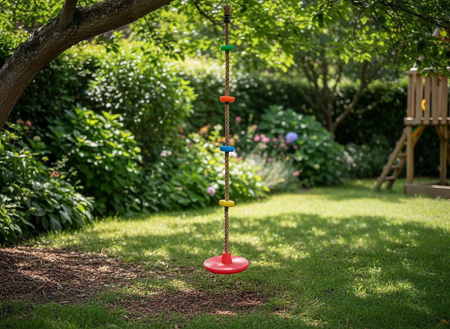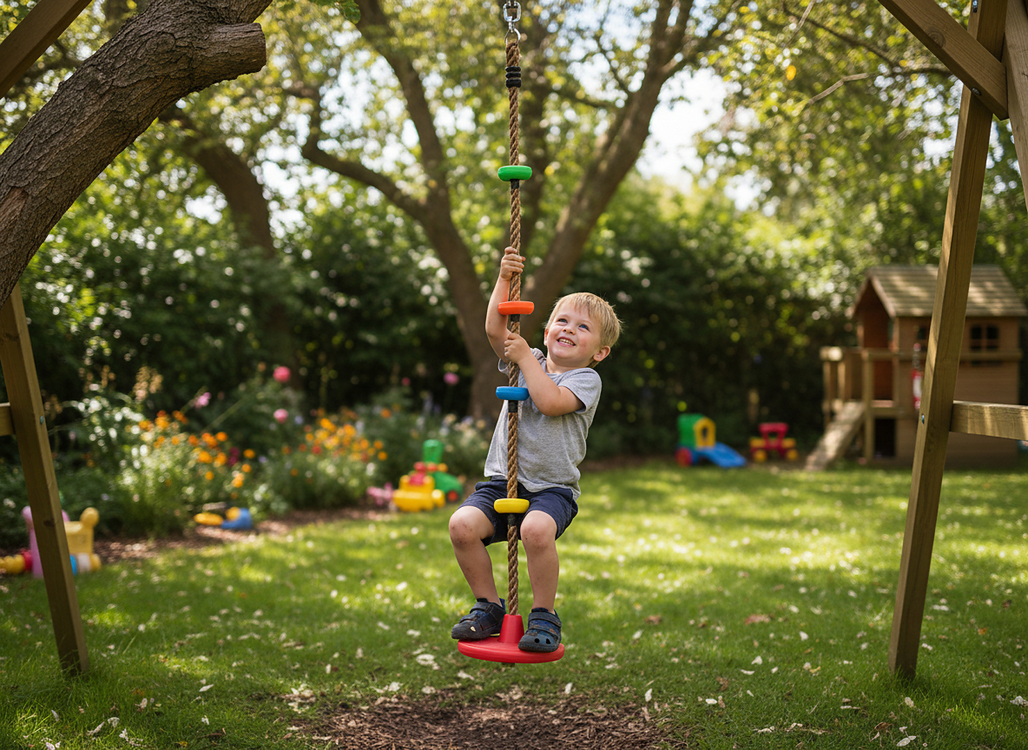 Незалежно від того, чи дитина хоче лазити, чи гойдатися – ця мотузка з диском задовольнить її очікування. Ідеально підходить як подарунок і як доповнення до будь-якого садового ігрового набору! 🎁
