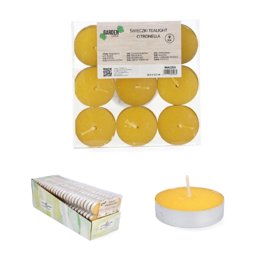 Набір з 9 свічок типу tealight в металевій оболонці.До складу воску входить ефірна олія цитронелли, відома своїми властивостями відлякувати комарів.Розмір: 11,5x1,5 смВАЖЛИВО: Перед використанням ознайомтеся з позначками на етикетці.