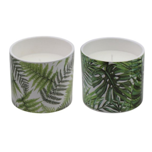 Свічка в елегантному керамічному ковпачку, доступна в двох рослинних дизайнах. До складу воску входять ефірні олії, які виділяють ніжний цитрусовий аромат. Підійде як для використання в будинку, так і на вулиці, але пам'ятайте, що свічку потрібно ставити на стійку поверхню, подалі від легкозаймистих предметів і поза межами досяжності дітей.Розмір: 10x9 см.