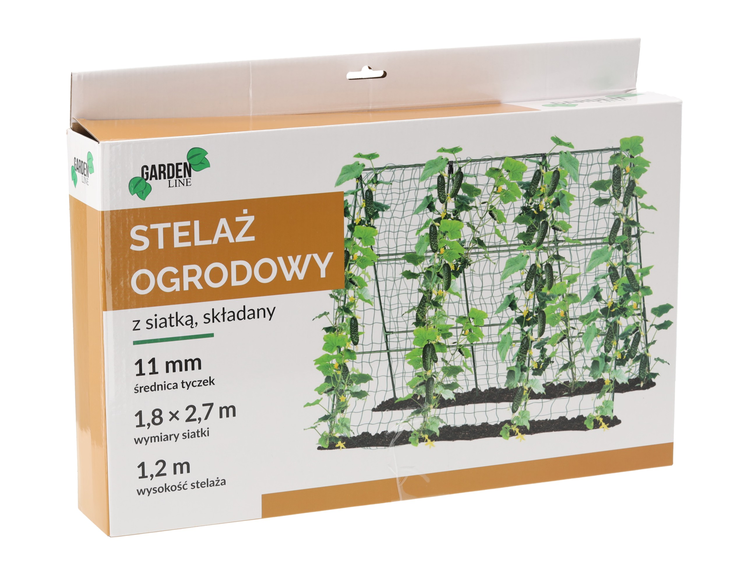 Висота каркаса: 120 смПалиці розміром: діаметр 11 мм x довжина 40 см (37 штук)З'єднувач для жердин (22 штуки)Сітка розмірами 1,8 м x 2,7 мДріт для зв'язування (скручений): 20 мСадові затискачі (20 штук)
