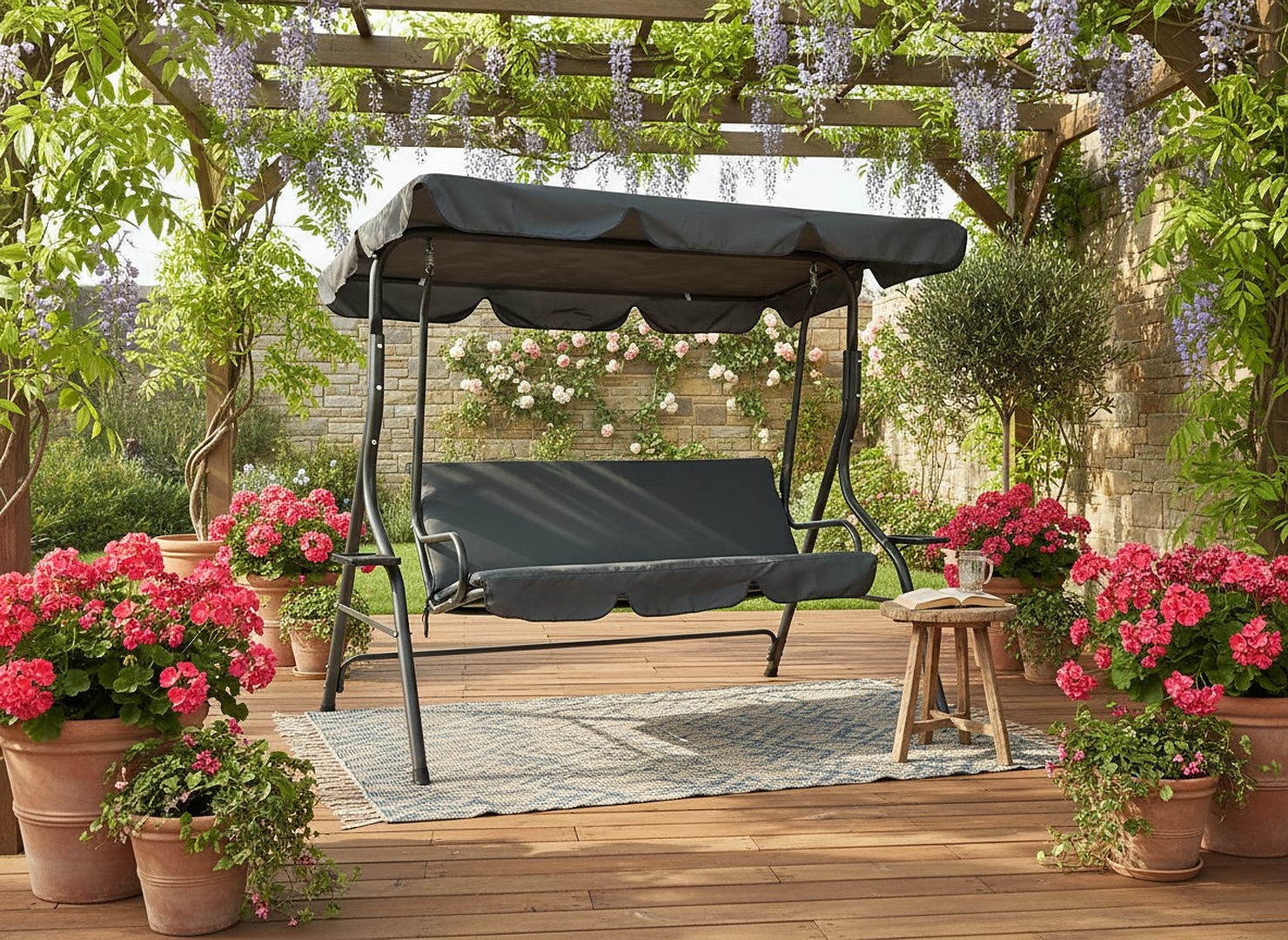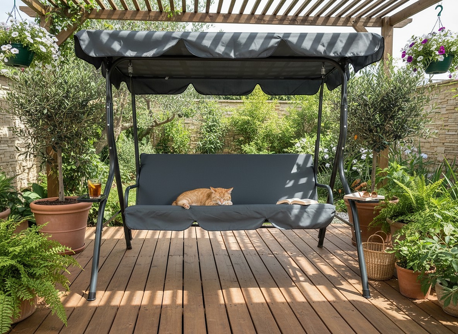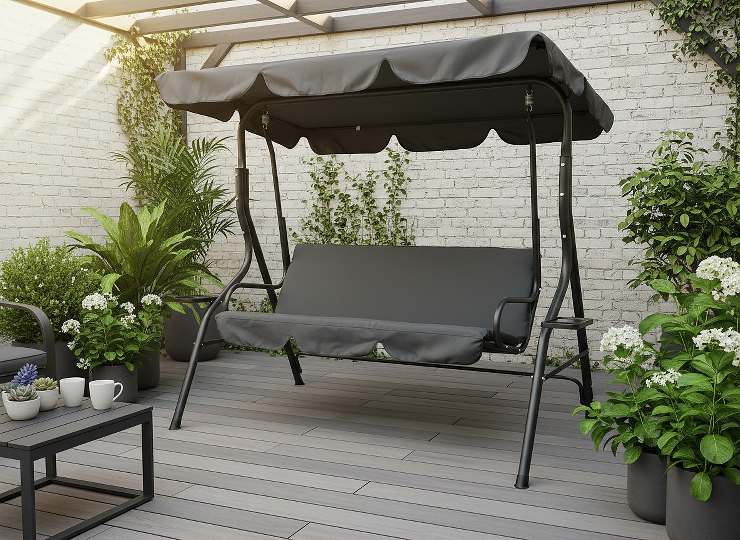 Елегантна садова гойдалка в антрацитовому відтінку – чудове рішення для тих, хто хоче поєднати стиль і функціональність. Мінімалістичний дизайн і міцна конструкція роблять цей предмет меблів не тільки привабливим, але й довговічним.