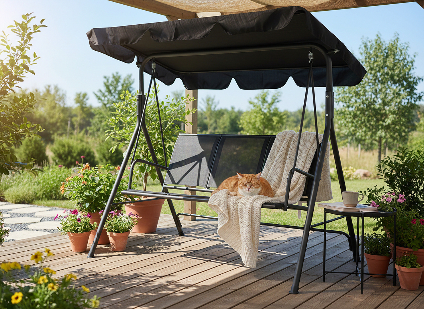 Мінімалізм, зручність і функціональність – ця садова гойдалка є ідеальним варіантом для людей, які цінують стиль і комфорт у сучасному виконанні. Чорне оздоблення і міцні матеріали роблять її чудовою прикрасою будь-якого саду.