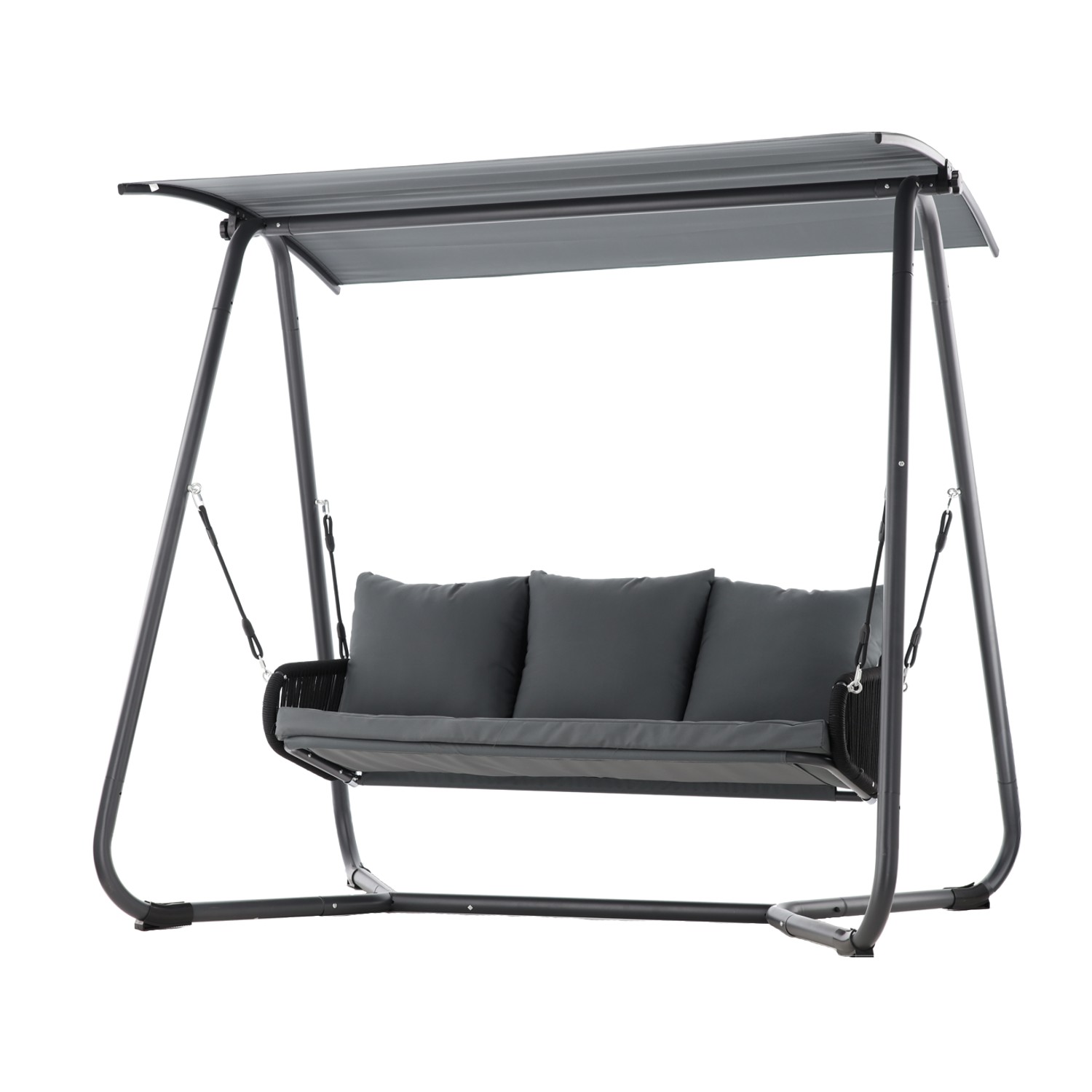 Антрацитовий колір гойдалки надає їй сучасності та елегантності, ідеально поєднуючись з оточенням саду або тераси.