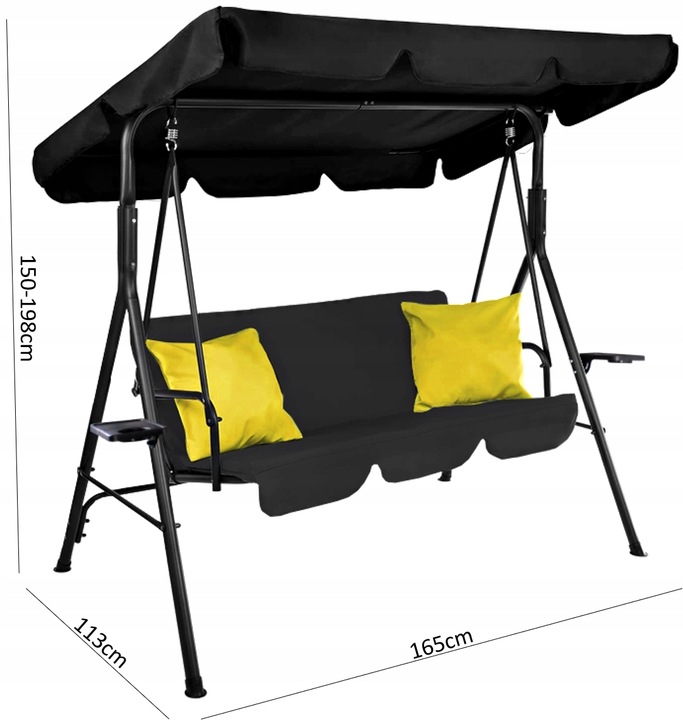 • Розміри гойдалки: 170 x 110 x 153 см (висота залежить від нахилу даху)