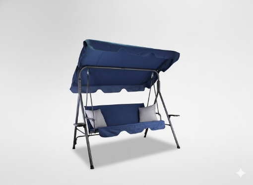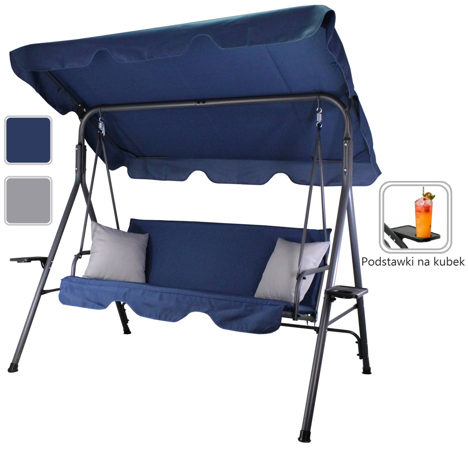 Зробіть ставку на елегантність і комфорт у саду! Темно-синя гойдалка A-Type з сірими подушками – ідеальне поєднання стилю та зручності. Завдяки універсальній кольоровій гамі вона чудово поєднується з сучасними та класичними інтер'єрами тераси або саду.