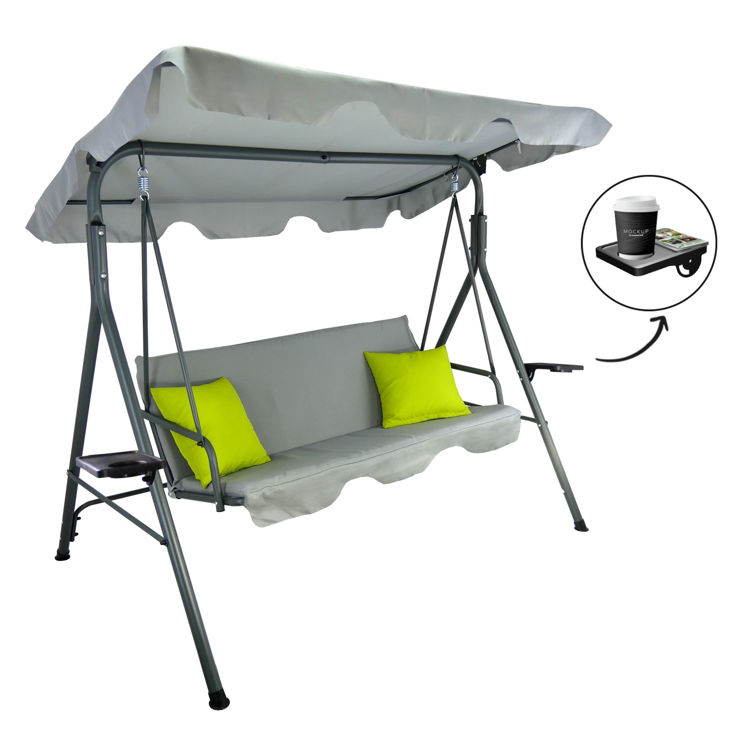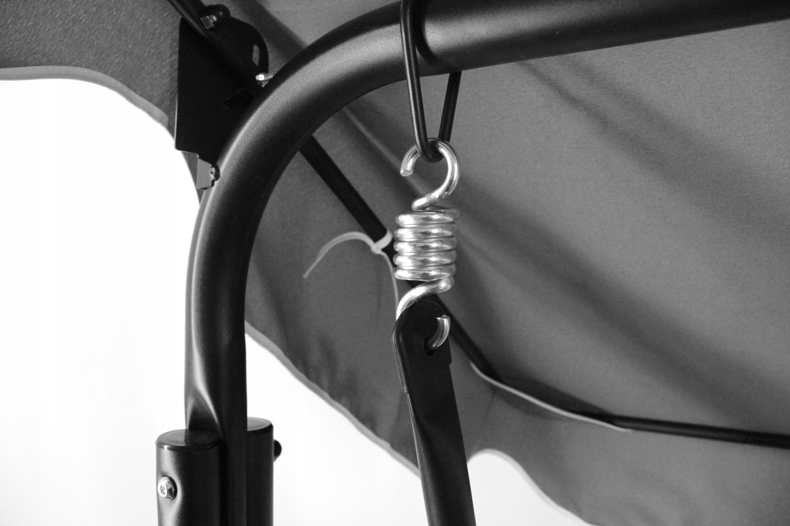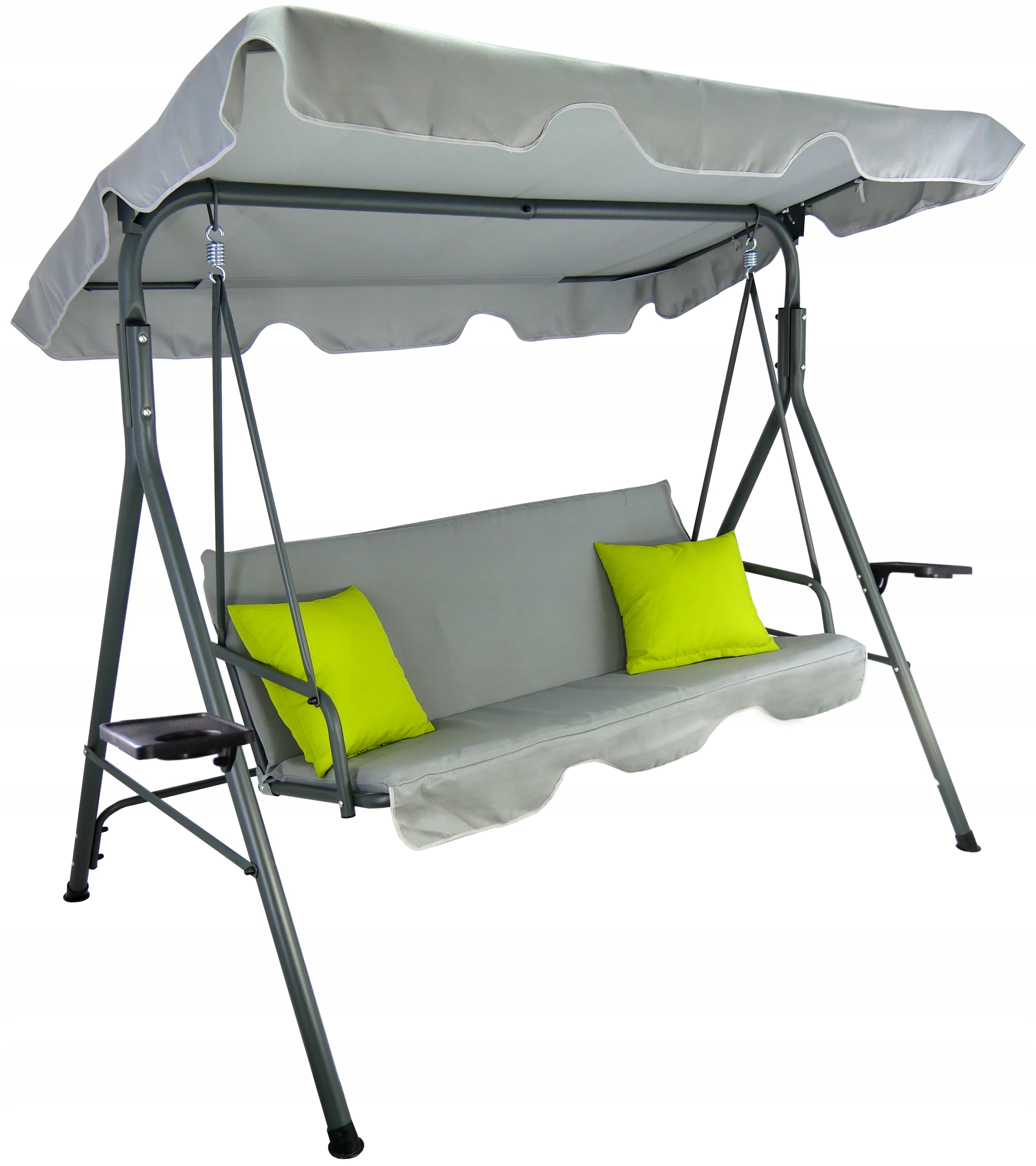 Гойдалка створена для всіх, хто любить проводити час у саду. Вона оснащенарегульованим дашком, який захищає від сонця.Знімні подушкистануть у нагоді під час чищення. Комплектдля самостійного монтажу. У комплекті євсі необхідні з'єднувальні елементи, гвинти та пружини.