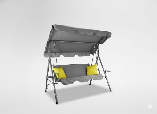 Стиль, зручність і практичність в одному! Ця унікальна садова гойдалка типу А – ідеальний вибір для любителів відпочинку на свіжому повітрі. Лимонні акценти додають енергії та свіжості будь-якому простору, а функціональні аксесуари підвищують комфорт використання.