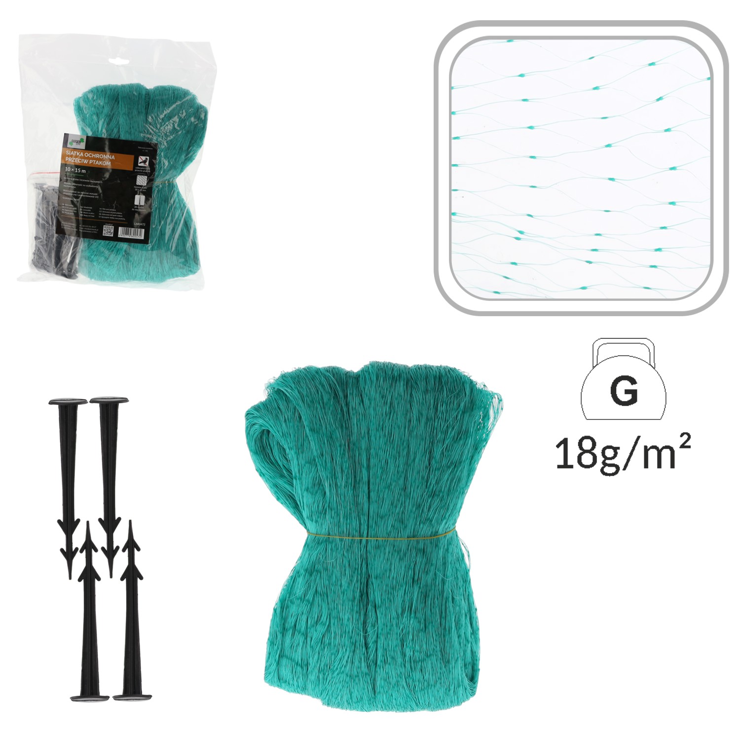 Пропонована сітка виготовлена з високоякісного поліпропілену низької щільності. Вона не створює значного навантаження на гілки. Сітка тонка та еластична, ідеально пристосовується до форми крони. Зелений колір робить її практично невидимою, що не порушує естетику саду. Ефективно захищає черешню, вишню, аґрус, лохину та навіть полуницю. Сітка чудово підходить для винограду. Стійка до впливу атмосферних умов, може служити кілька сезонів.
