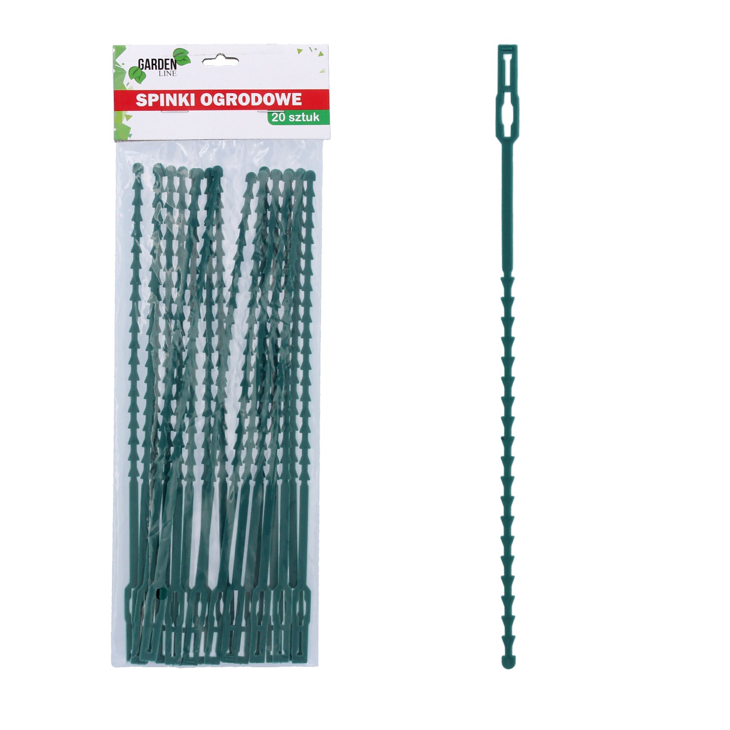 Затискачі для кріплення рослин до опор або садових каркасів. Ці еластичні, регульовані стрічки достатньо м'які, щоб не пошкодити рослину, але забезпечити її надійне кріплення до опори. Стрічка виготовлена з еластичного зеленого пластику, який гармонійно поєднується з рослинами. У комплекті знаходяться затискачі довжиною 22 см зеленого кольору.-Колір: зелений-Довжина: 22 см