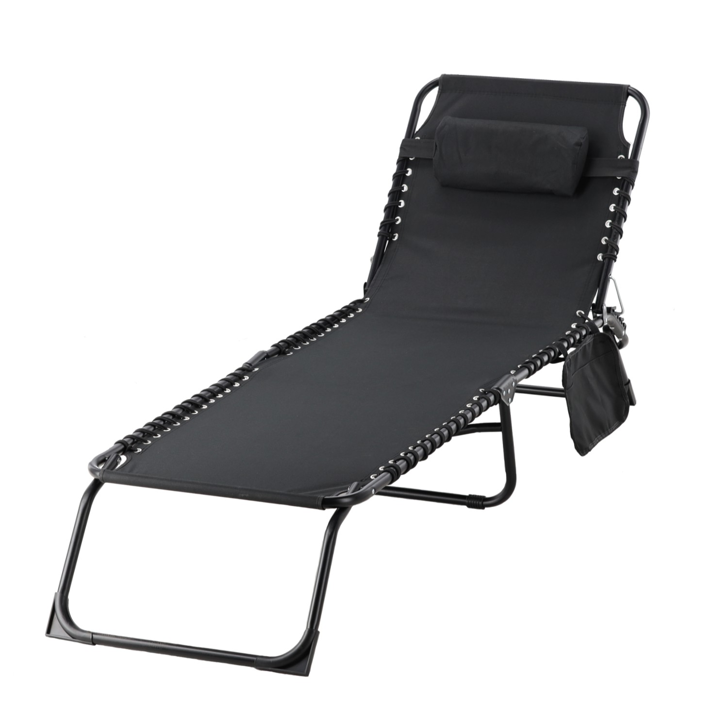 ШЕЗЛОНГ / СКЛАДНЕ САДОВЕ ЛІЖКО 190 x 58 x 30 СМ З КИШЕНЕЮ ЧОРНИЙ 🛏️