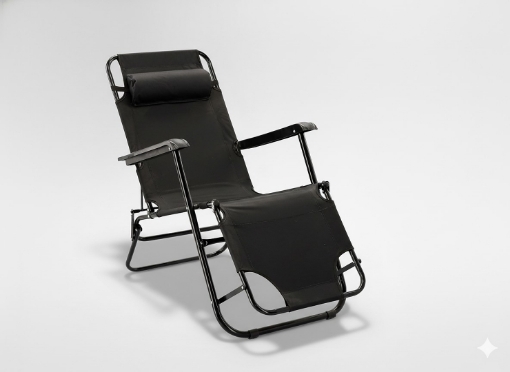 СКЛАДНИЙ САДОВИЙ ШЕЗЛОНГ З ПІДГОЛОВНИКОМ ЧОРНИЙ 🖤