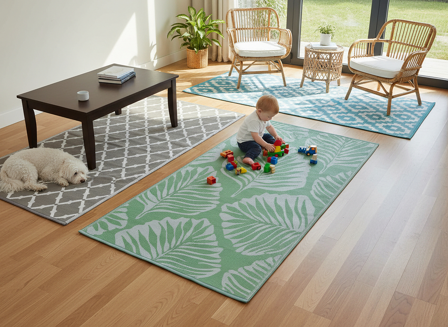 Це швидкий спосіб візуальної метаморфози простору – практичний, стильний і готовий до будь-яких погодних умов. Килимок 120 × 180 см додасть комфорту та естетики кожному куточку саду або тераси 🌸
