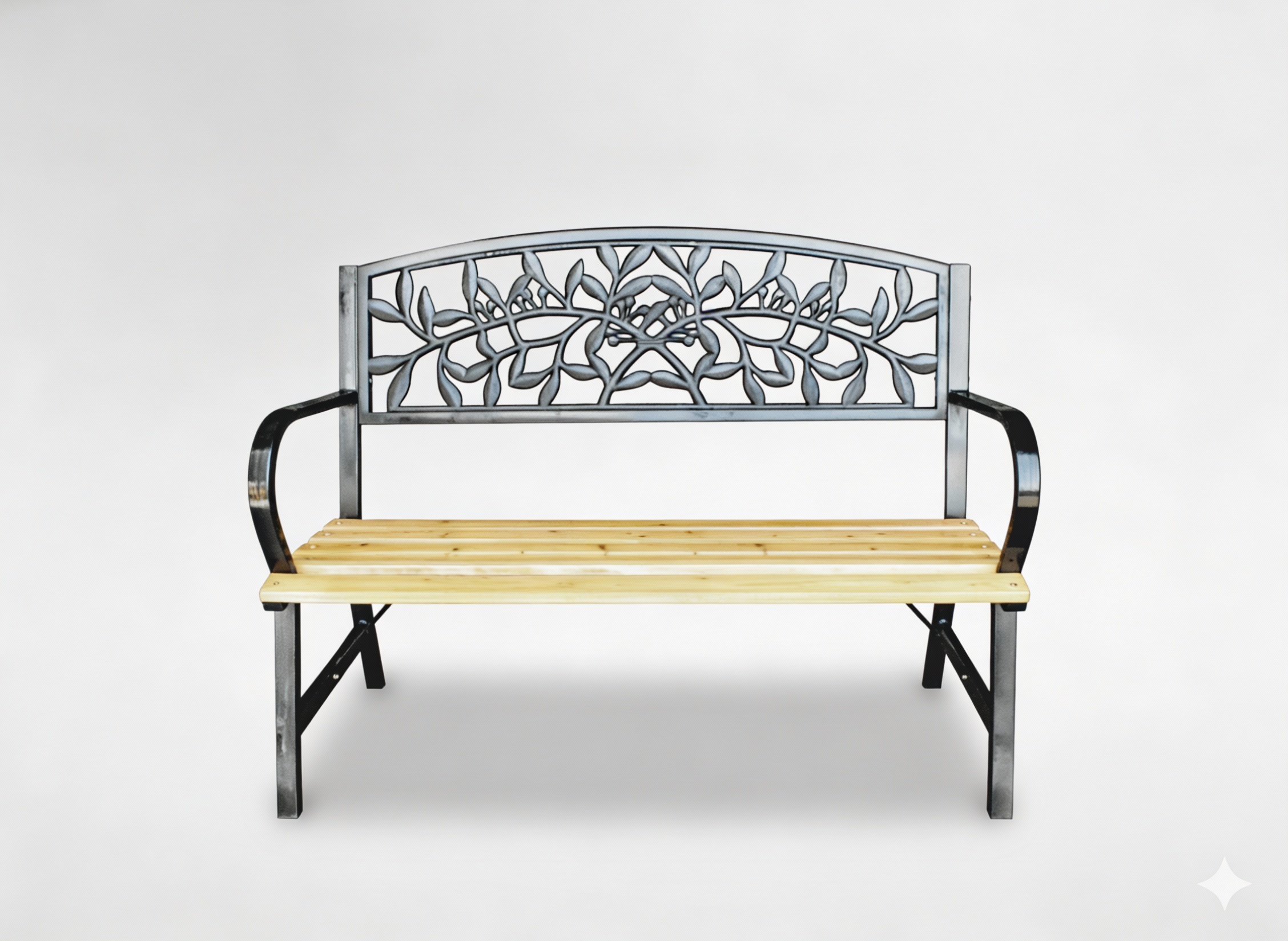 Естетика лавки поєднує в собі тепло натурального дерева з елегантністю та сучасністю чорної сталі. Таке поєднання кольорів дозволяє легко підібрати лавку до різних стилів оформлення, від класичних до більш сучасних садів.