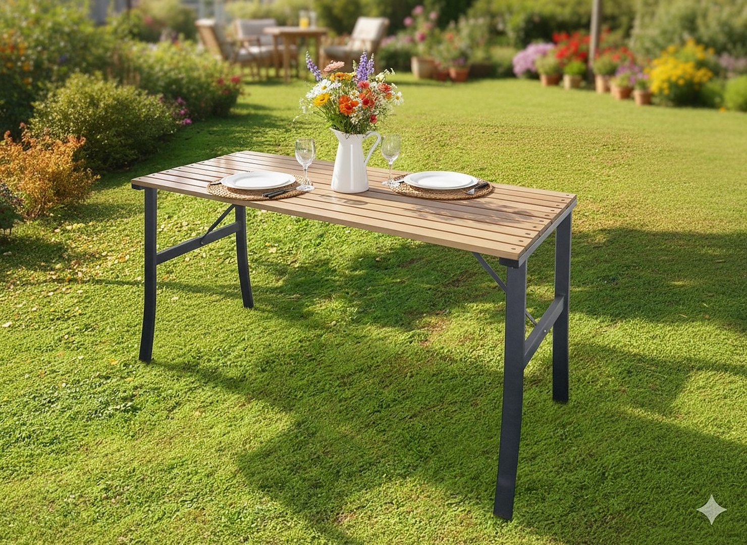 Відкрийте для себе функціональний і стильний садовий стіл, який ідеально поєднує природну красу дерева з міцною сталевою конструкцією. Це ідеальний вибір для саду, тераси, балкона або альтанки – скрізь, де важливі комфорт, довговічність і естетика. 🌿☕Завдяки ретельно підібраним матеріалам стіл зберігає стабільність і чудовий вигляд протягом багатьох сезонів використання.