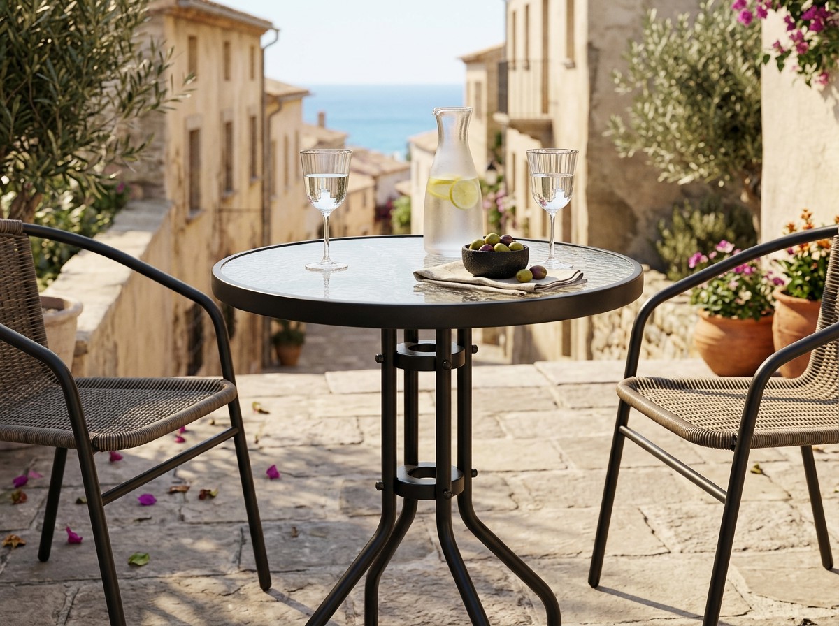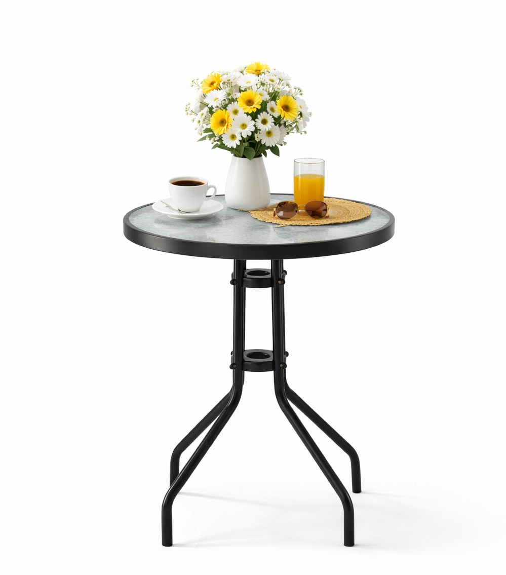 Елегантний і функціональний круглий садовий столик — ідеальний вибір для саду, тераси або балкона. Сучасне поєднання металевого каркаса зі скляною стільницею надає йому легкості, а водночас забезпечує міцність і стійкість. Він чудово підійде як місце для ранкової кави ☕, післяобіднього відпочинку або зустрічей у колі найближчих людей 🌞
