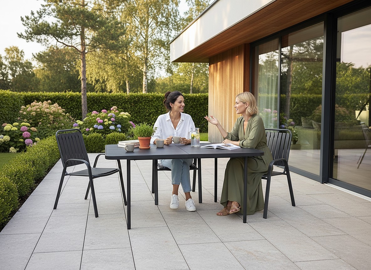 Єдина колірна гама та універсальна форма меблів дозволяють створити гармонійний інтер'єр, який ідеально вписується як у сучасні, так і в класичні зовнішні простори.