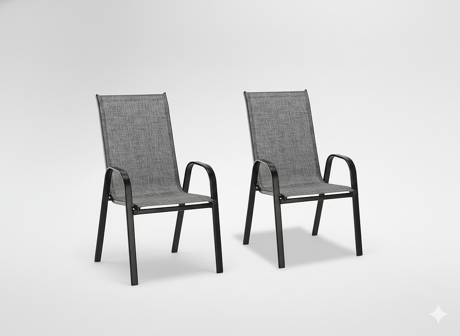 Комплект із 2 садових стільців GardenLine з чорною рамою та сірим оббивкою — це практичне, естетичне та зручне рішення для будь-якого зовнішнього простору. Довговічність, комфорт та позачасовий вигляд роблять цей вибір таким, що прослужить багато сезонів ☀️☕