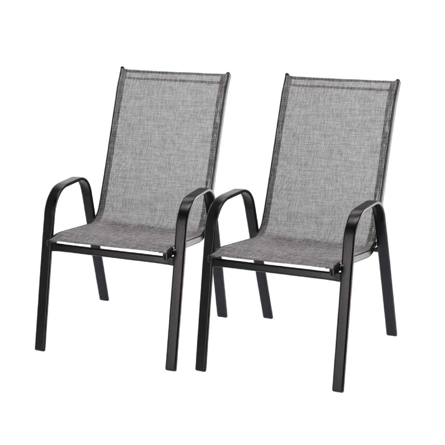 🪑 КОМПЛЕКТ З 2 САДОВИХ СТІЛЬЦІВ – ЧОРНА РАМА, СІРИЙ ОБИВКА