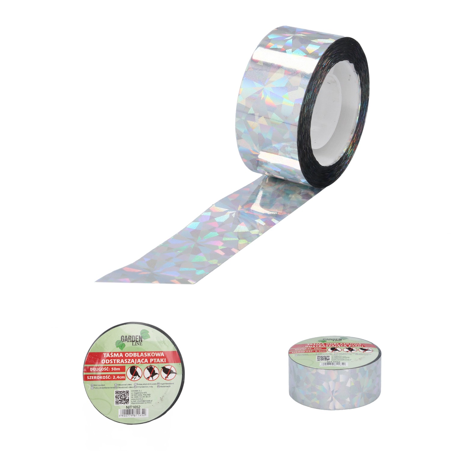 Світловідбивна стрічка, що відлякує птахів, є ефективним захистом від небажаних гостей у саду, на балконі або в саду. Вона відбиває світло і м'яко рухається на вітрі, що ефективно відлякує птахів від приземлення і сидіння. Продукт срібного кольору – добре помітний і естетичний.
