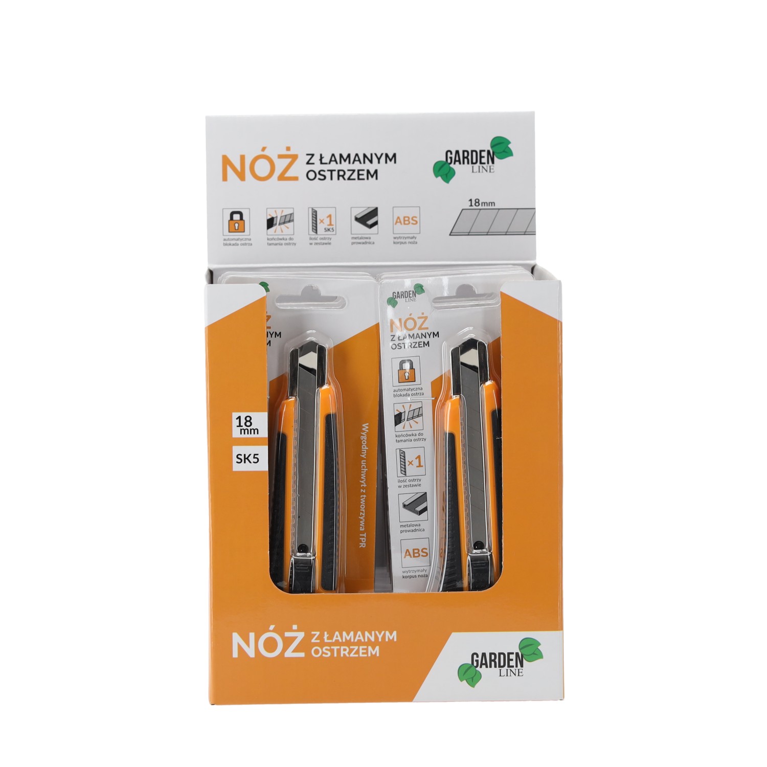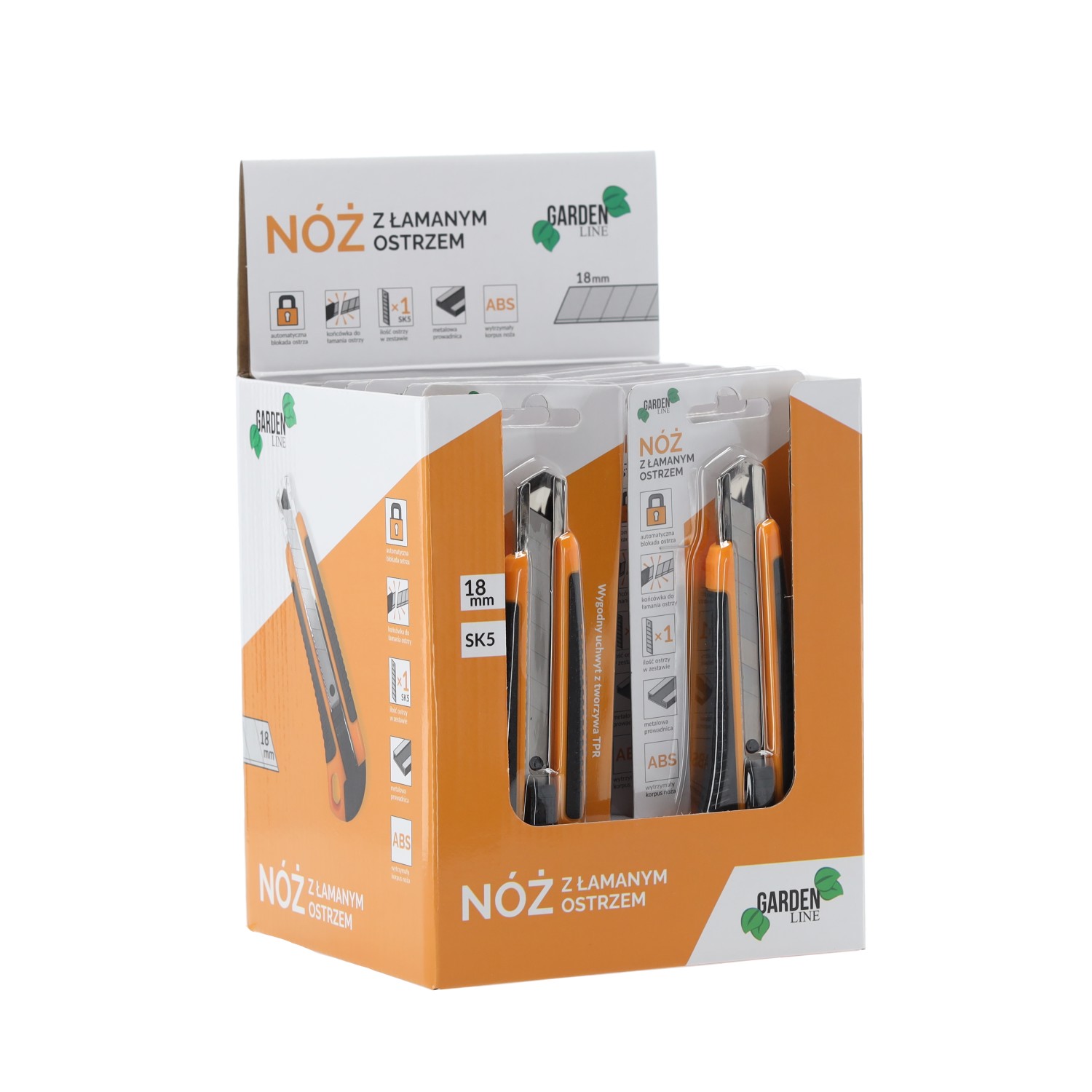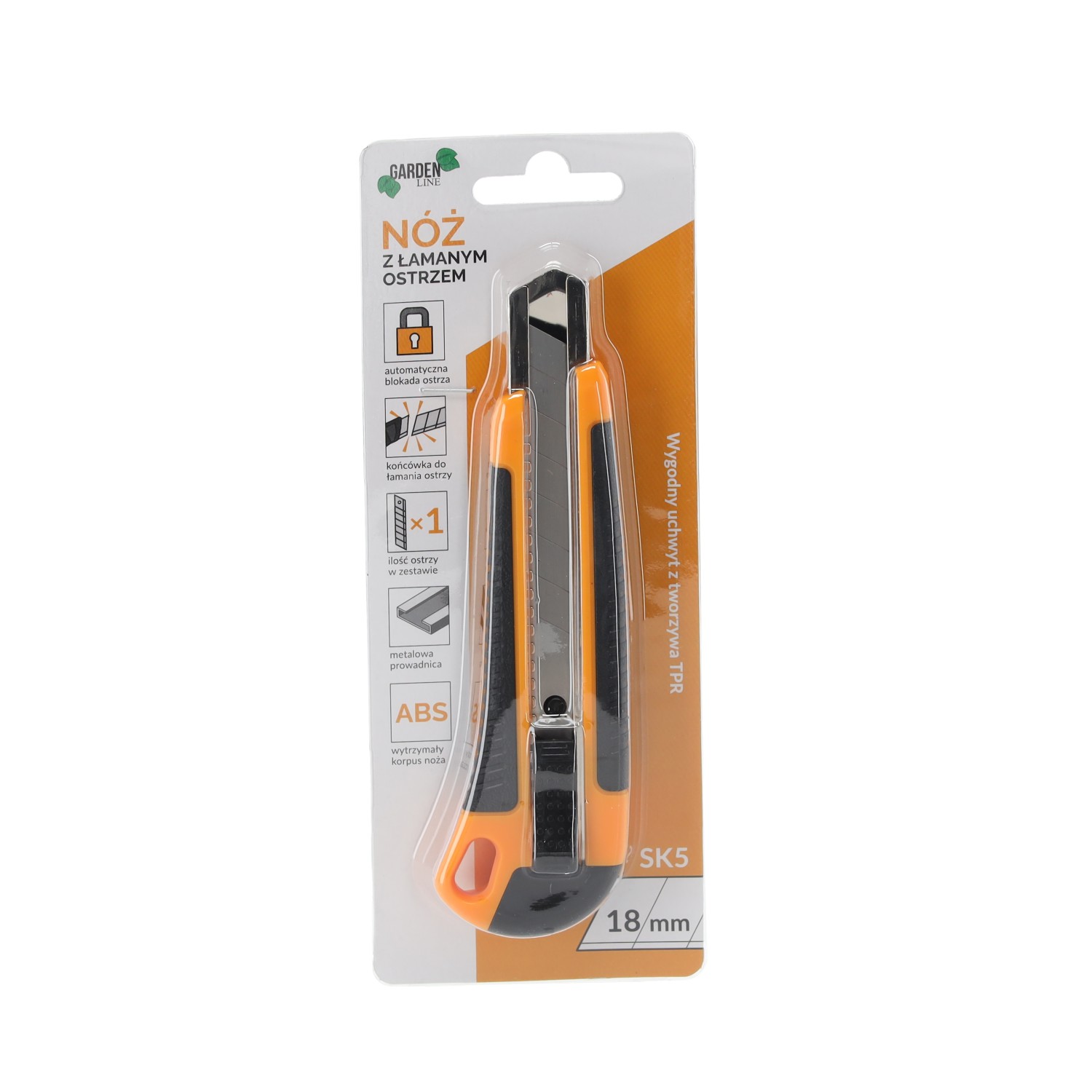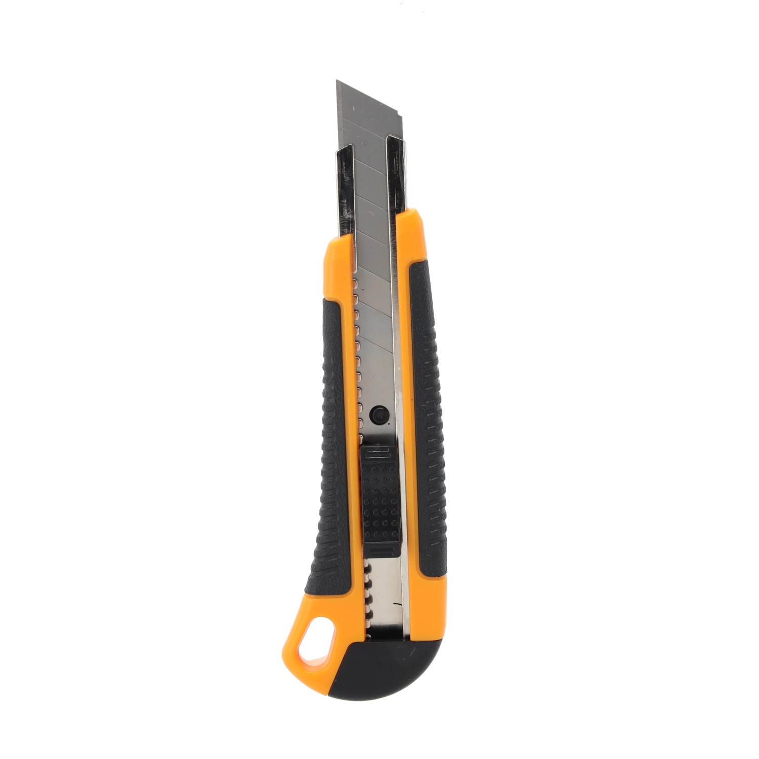 Корпус: ABS жовтого кольоруРукоятка: TPR чорного кольоруМеханізм: автоматична блокування лезаЛезо: 1 штука леза 18 мм, встановлене на заводіМатеріал леза: сталь SK5