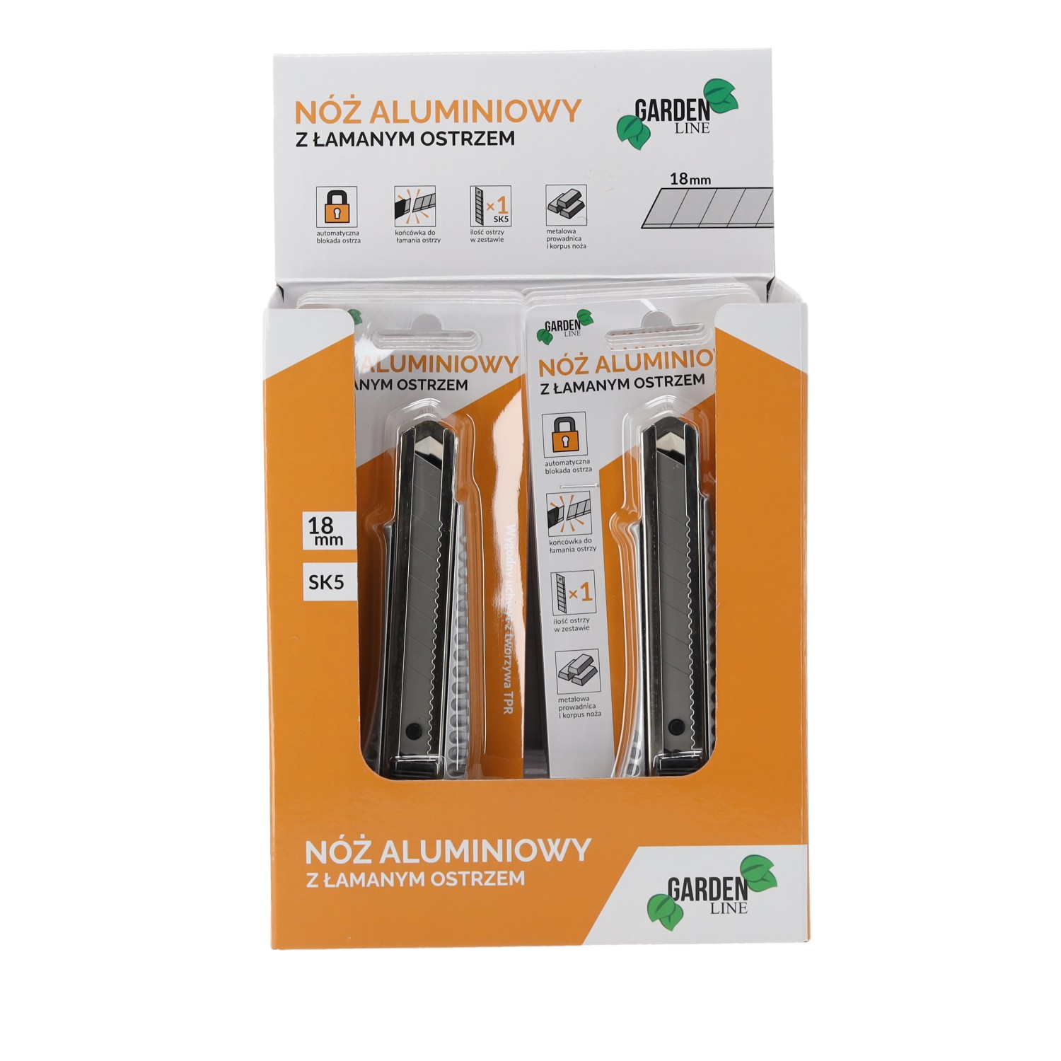 Корпус: алюмінієвий, пофарбований у срібний колірРукоятка: TPR чорного кольоруМеханізм: автоматична блокування лезаЛезо: 1 штука леза 18 мм, встановлене на заводіМатеріал леза: сталь SK5