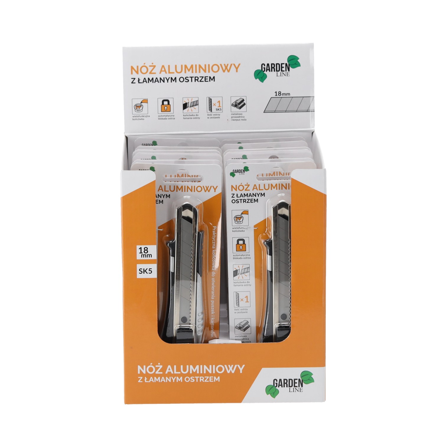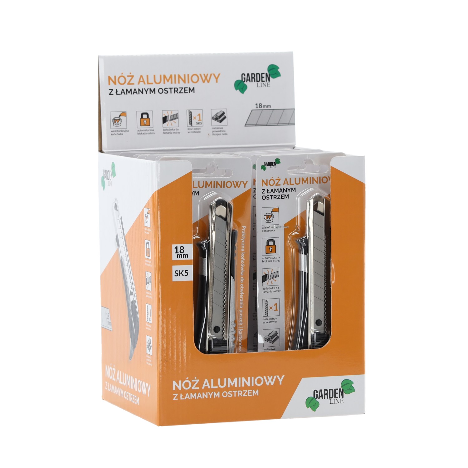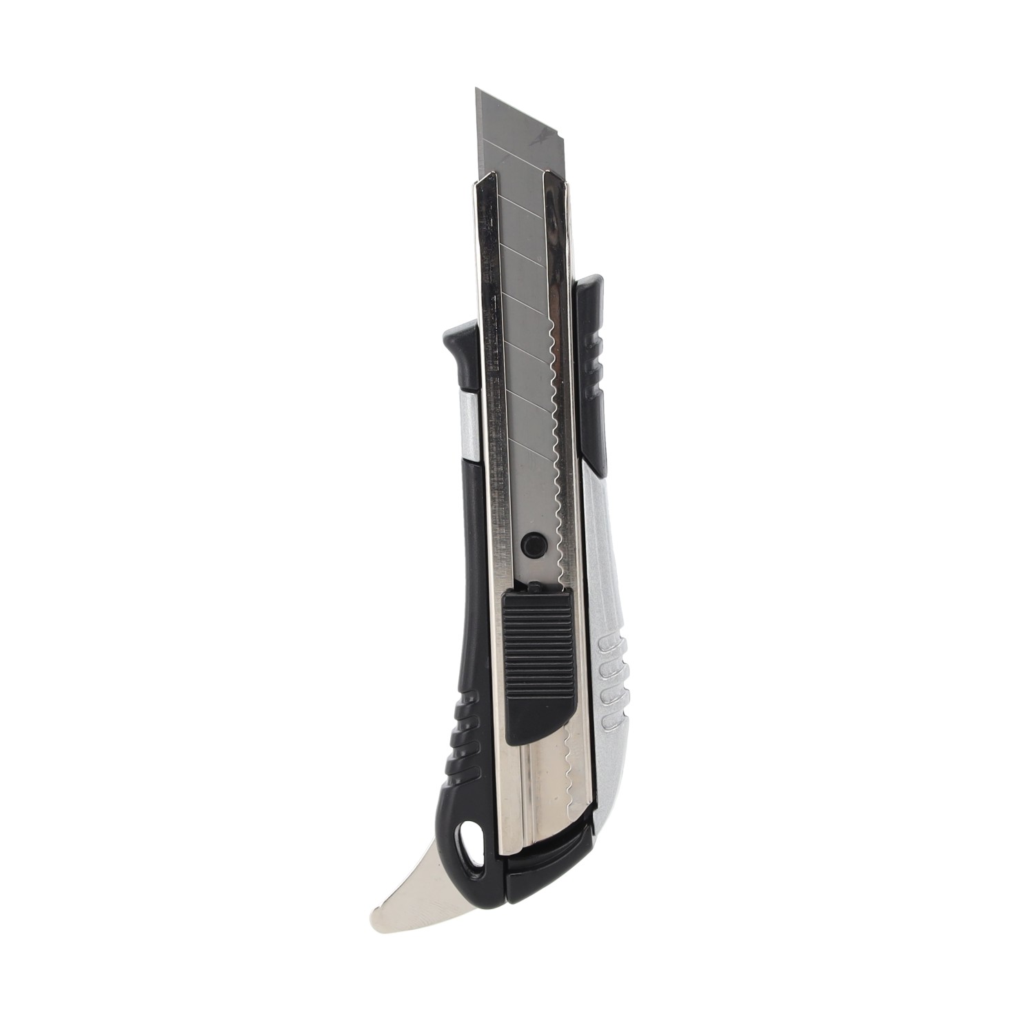 Корпус: алюмінієвий, пофарбований у срібний колірРукоятка: ABS чорного кольоруМеханізм: Автоматична блокування лезаДодаткова функція: відкривачка для банокЛезо: 1 штука леза 18 мм, встановлене на заводіМатеріал леза: сталь SK5