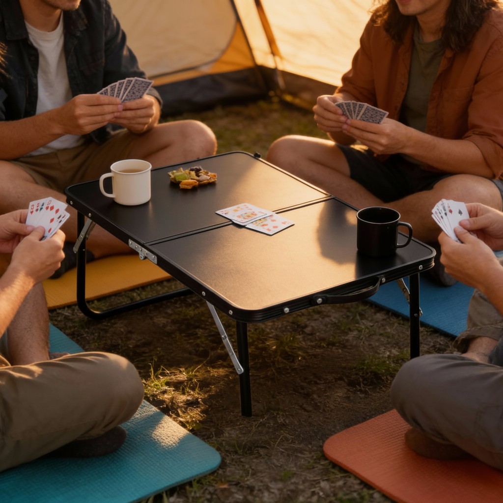 Потрібен зручний столик для кемпінгу, пікніка або подорожі? Цей складаний туристичний столик в елегантному чорному кольорі — незамінний аксесуар для всіх, хто любить комфорт на природі! 🧺 Невеликий в складеному вигляді, але стабільний і місткий в розкладеному — готовий до використання за кілька секунд!