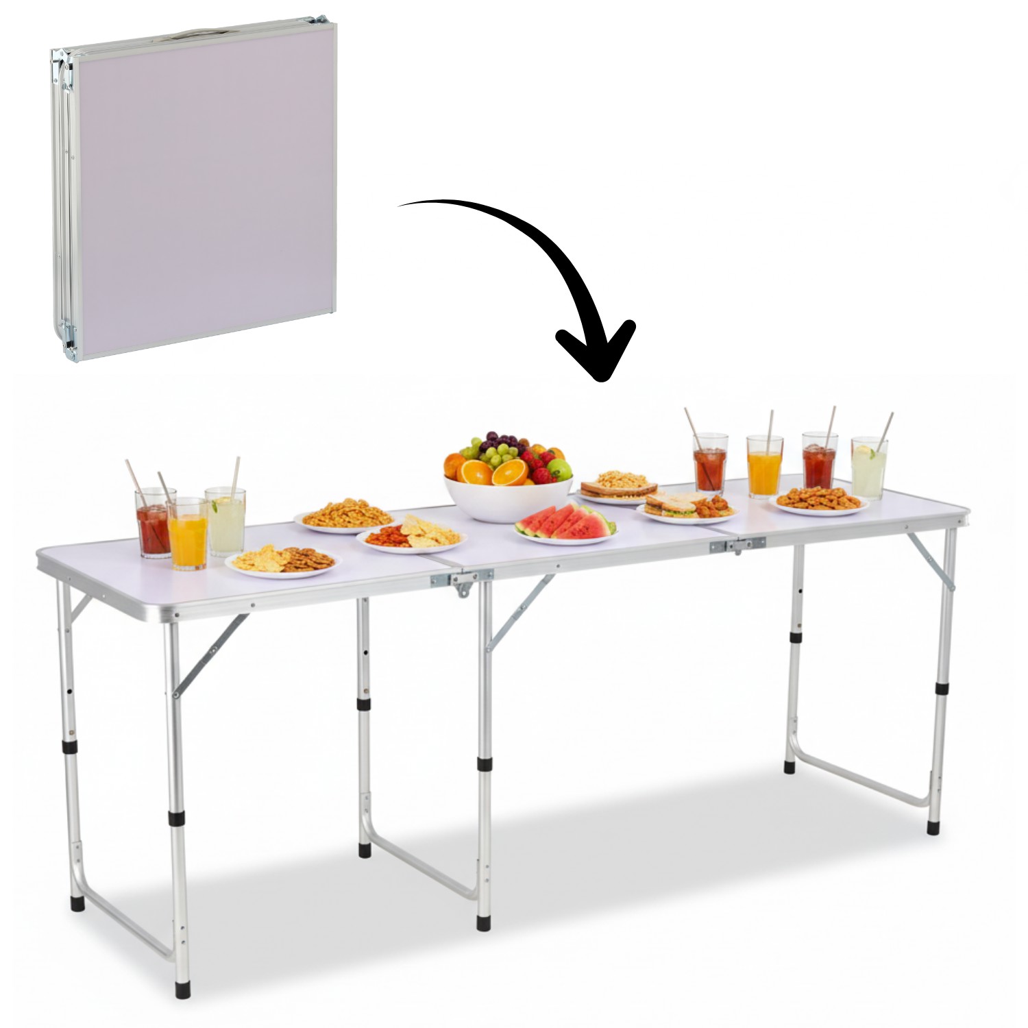 Регульована висота, стабільна сталева рама та міцна стільниця з МДФ гарантують зручність та функціональність – як під час сімейного барбекю, так і під час відпустки. ✨ Кілька секунд – і готово!