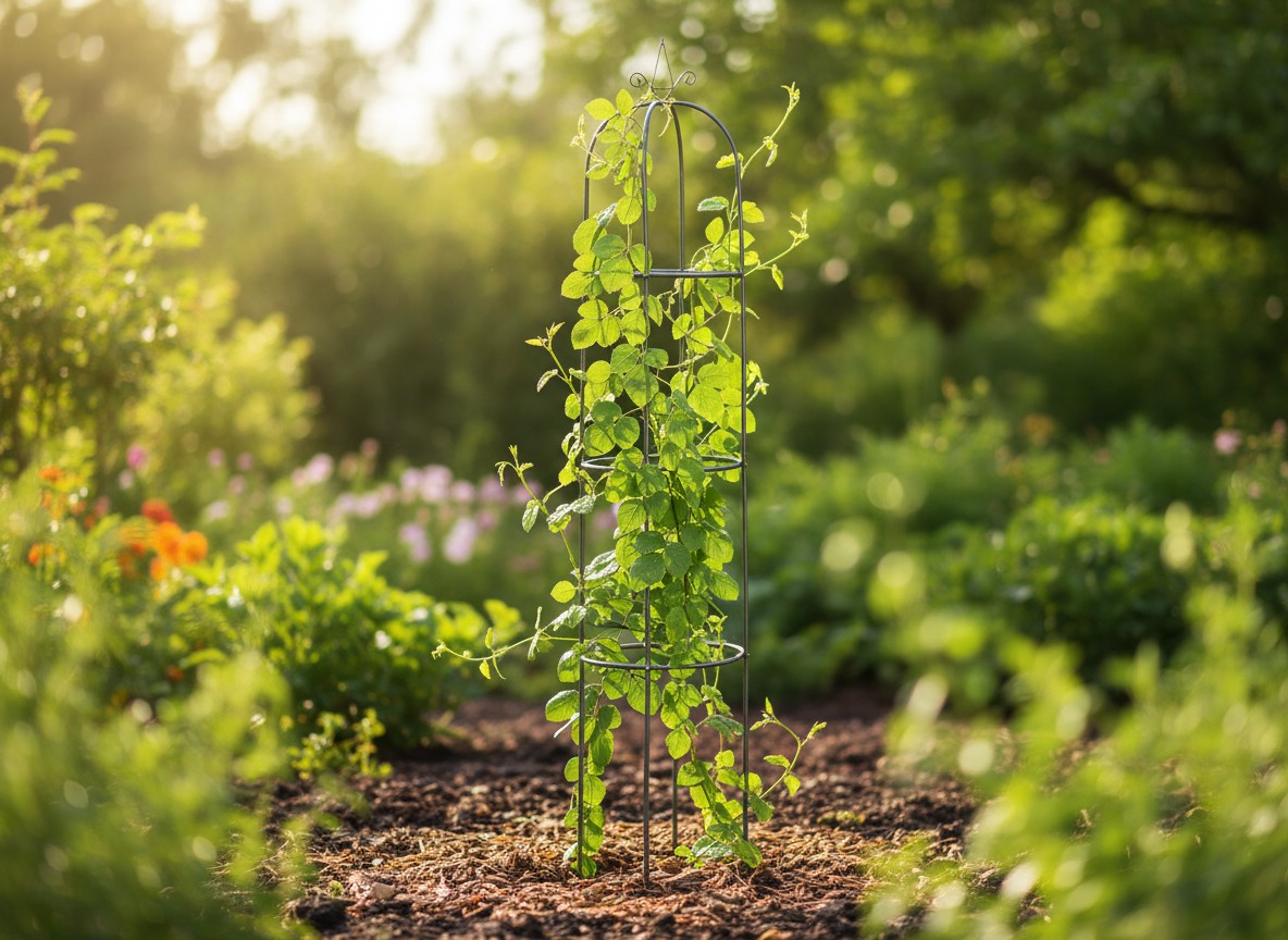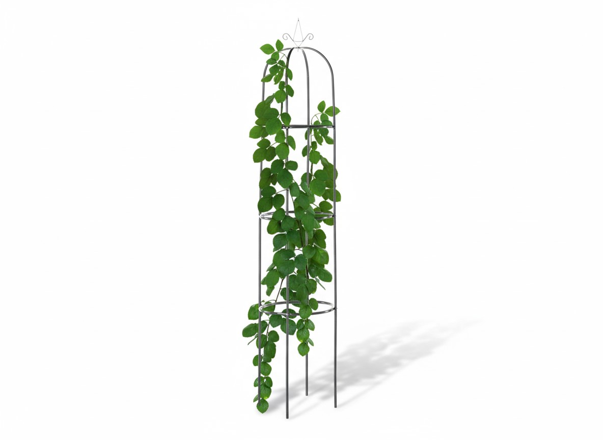 Створена з металевих трубок, пофарбованих порошковою фарбою, з декоративною обробкою у верхній частині, вона створює візуально легку, але стабільну конструкцію для запашного гороху, клематисів та інших в'юнких рослин. 🌿