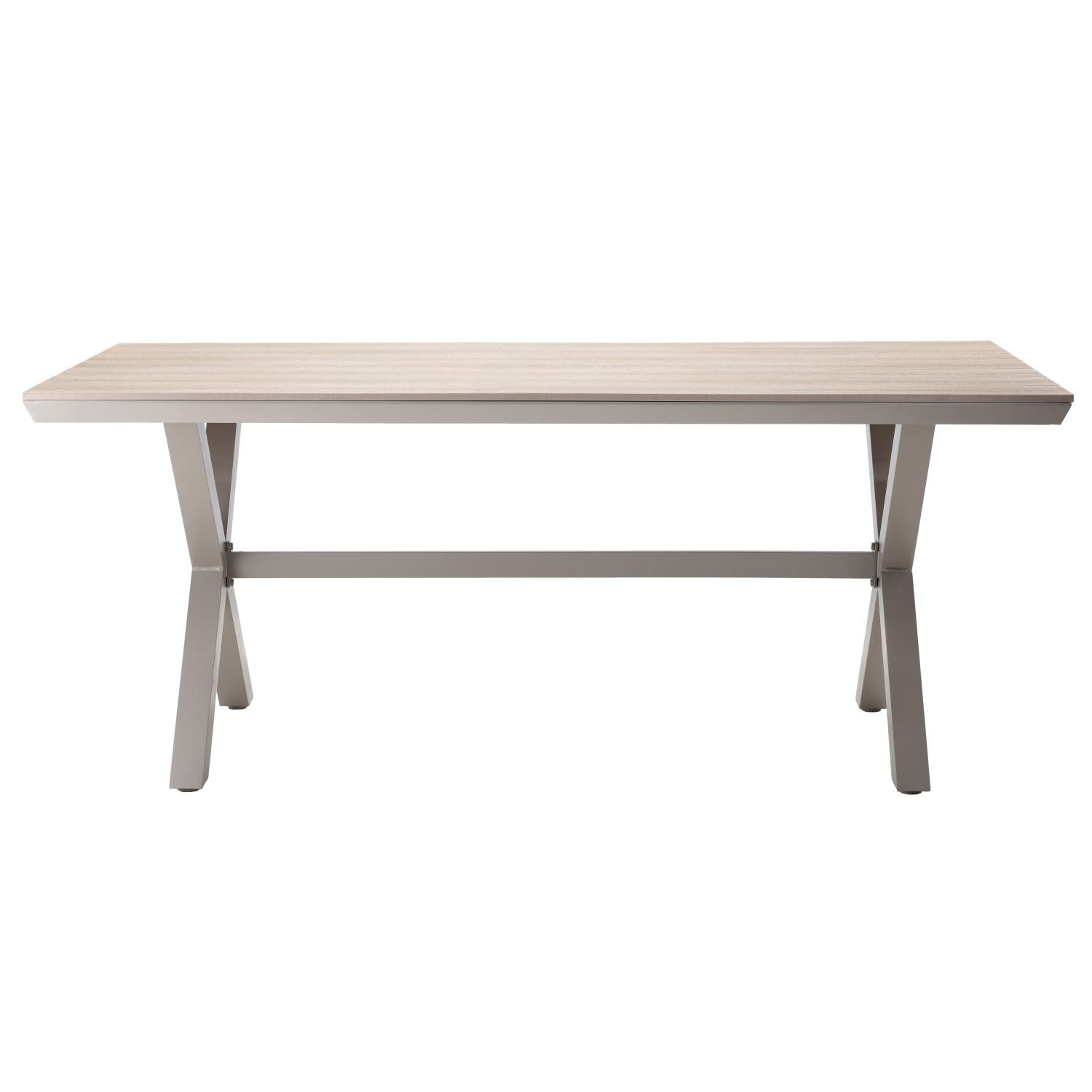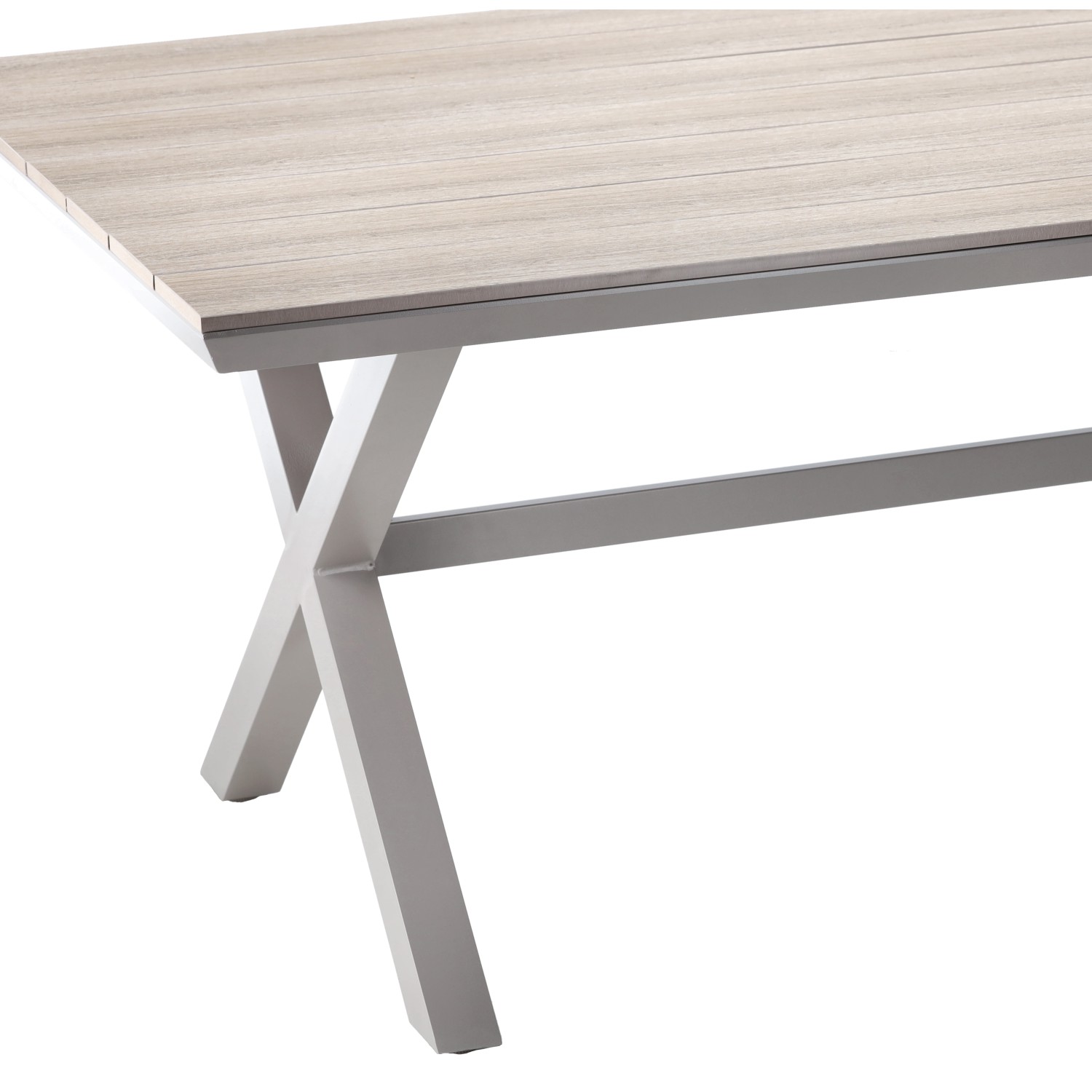 Прямокутний садовий стіл, виготовлений з алюмінію та полівуду – матеріалу, стійкого до атмосферних умов, який чудово імітує дерево. Сучасний дизайн та міцна конструкція роблять стіл ідеальним для садів, терас та балконів.