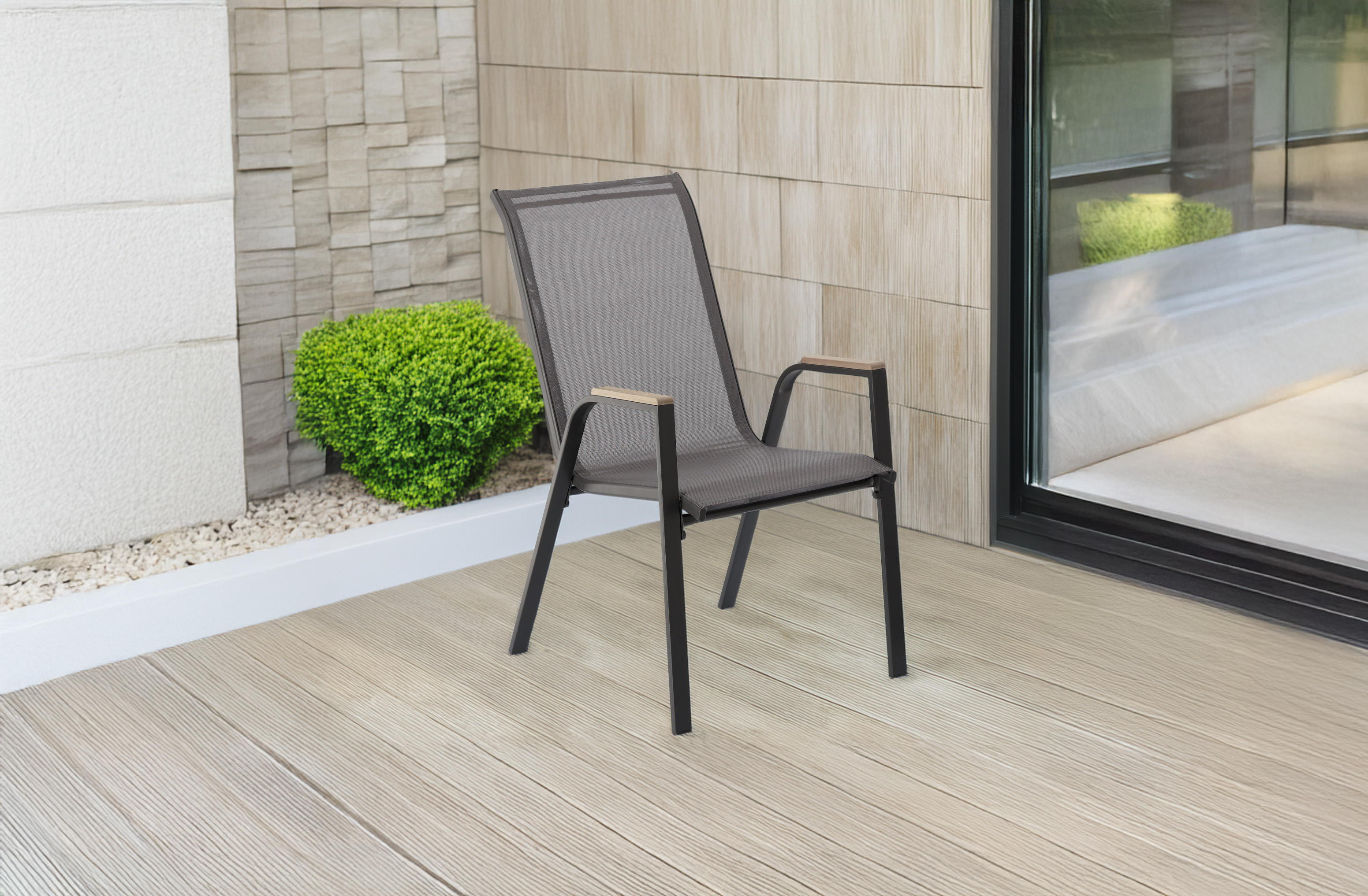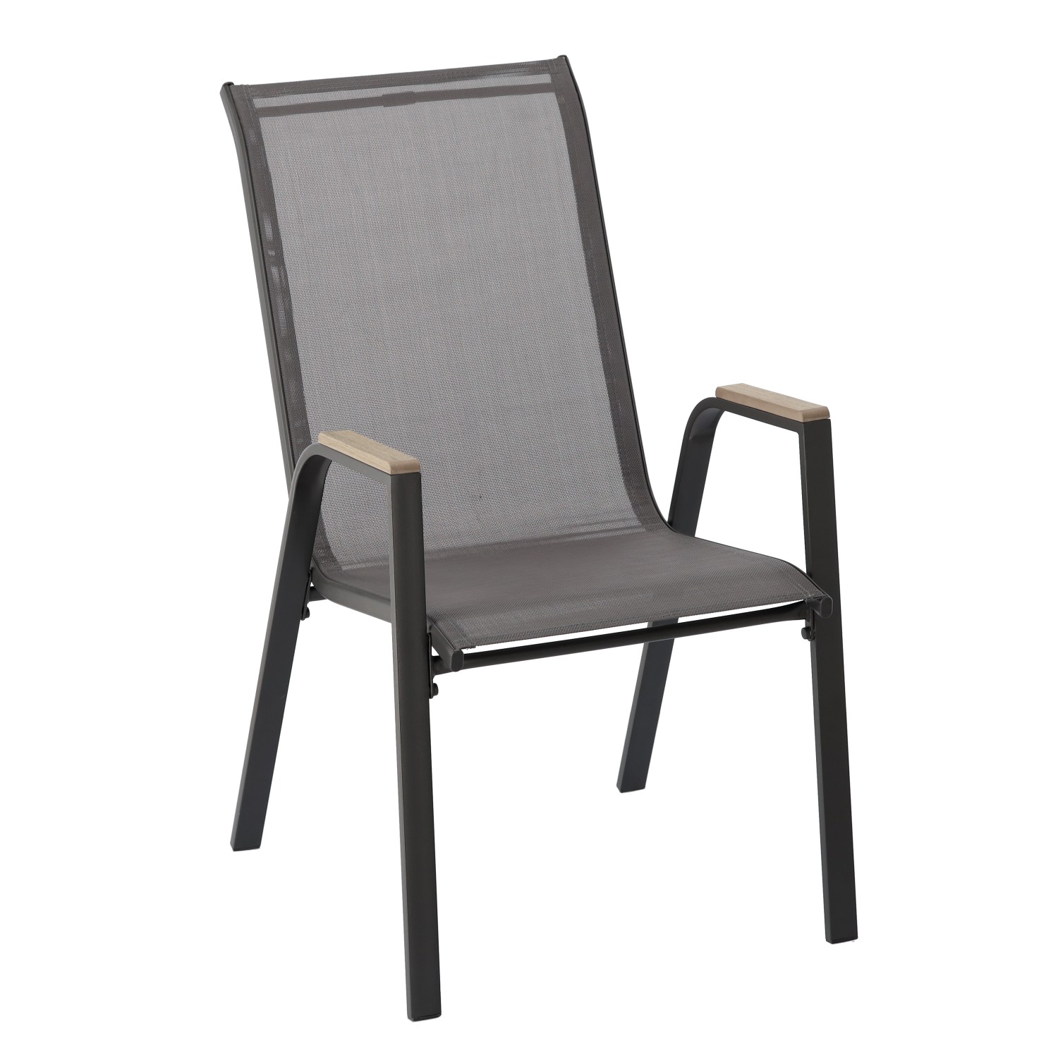 Міцне та зручне садове крісло, виготовлене з міцної сталевої рами та сітки Textilene 2x1 з додатковою оббивкою. Ідеально підходить для використання на терасі, в саду або на балконі. Підлокітники з матеріалу polywood надають елегантний вигляд і забезпечують стійкість до атмосферних умов.