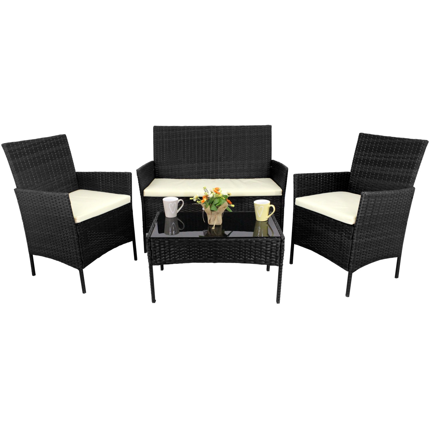 Елегантний і класичний комплект меблів, який ідеально підійде для балкона, тераси або зони відпочинку в саду. Універсальний колір і цікава форма дозволяють гармонійно поєднуватися з будь-яким оточенням. Міцна конструкція і високоякісні матеріали забезпечують довговічність і зручність використання.