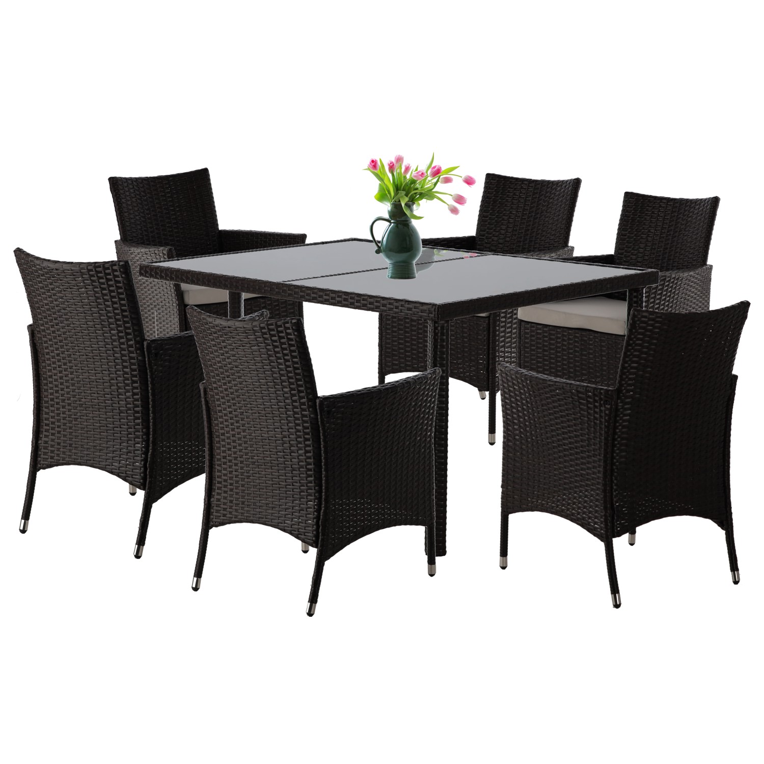 6 × садові стільці зі спинкою – ергономічні, з м'якими бежевими подушками