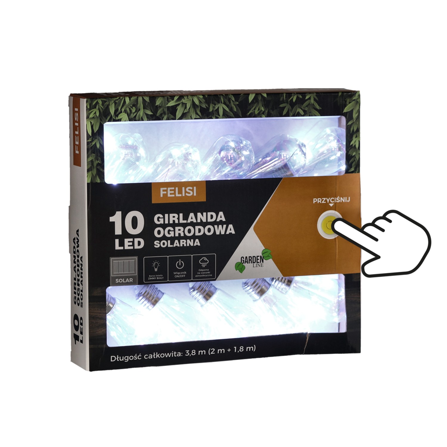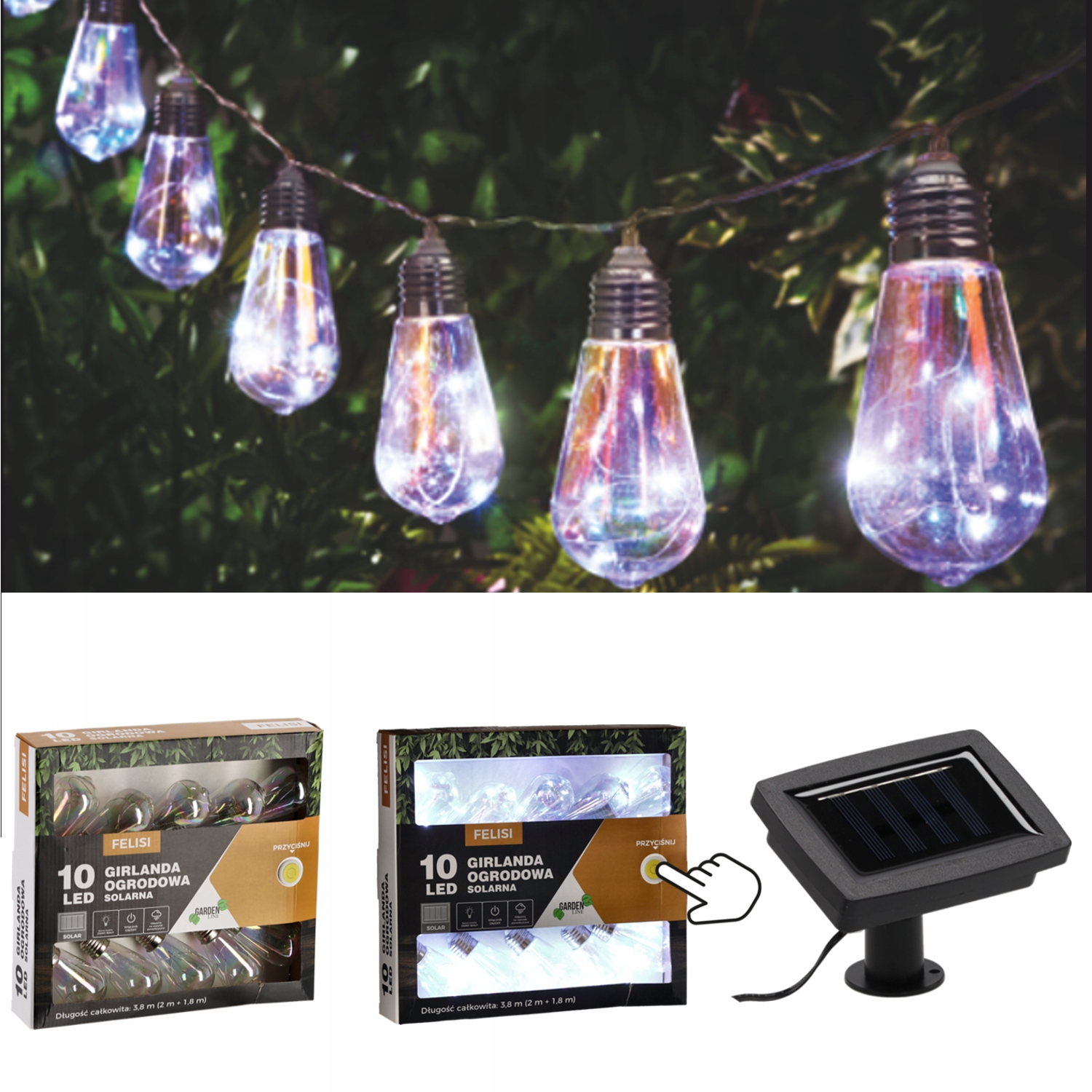 Сонячна гірлянда FELISI - це не тільки джерело світла, але й декоративний елемент, який створить особливу атмосферу у вашому просторі. Холодне біле світло LED рівномірно освітлює оточення, створюючи затишну і романтичну атмосферу в літні вечори.