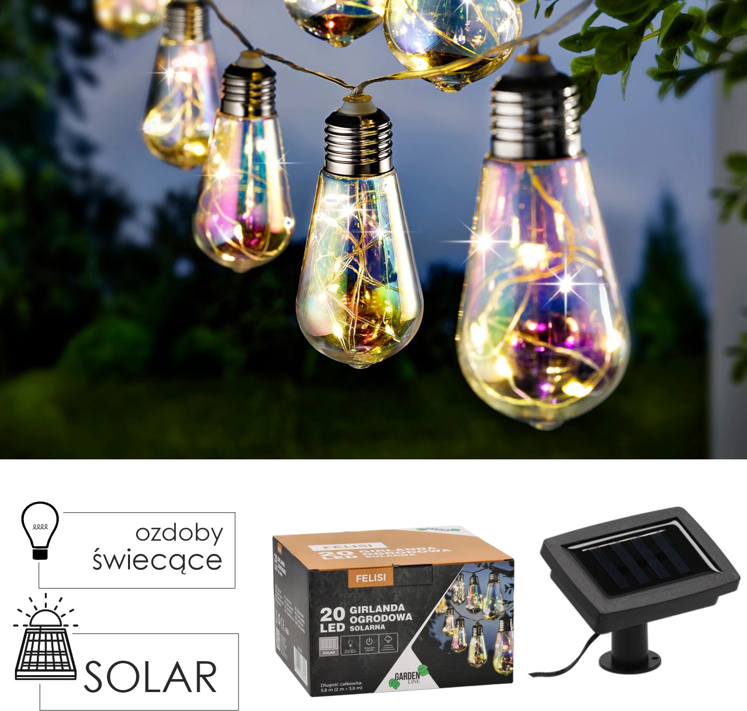 Додайте чарівного блиску своєму балкону, терасі або саду завдяки сонячній гірлянді FELISI. Ця світлова гірлянда - ідеальне рішення для зовнішнього освітлення, яке не тільки виглядає красиво, але й допомагає заощадити на рахунках за електроенергію завдяки сонячному живленню.
