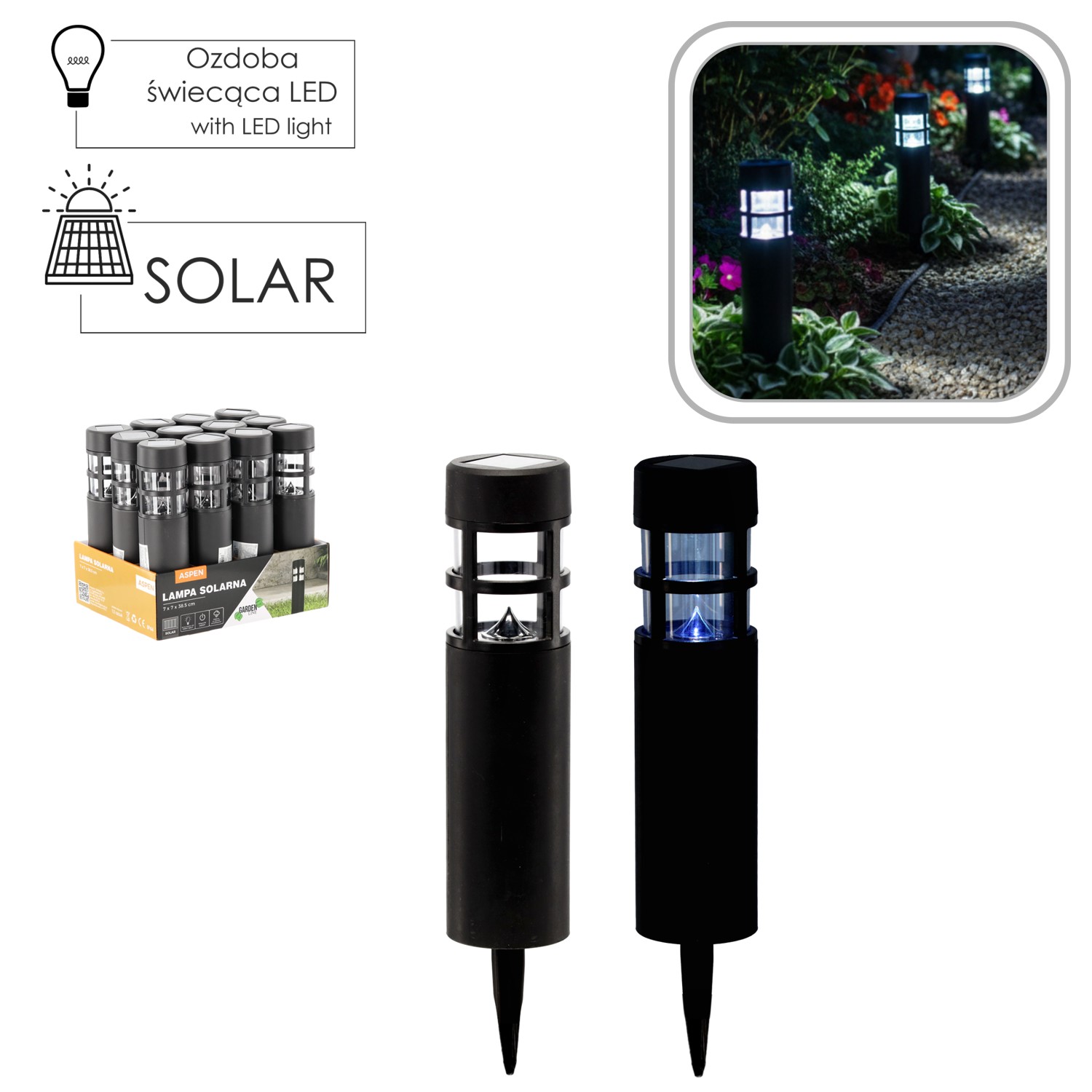 Сонячна лампа LED. Ідеально підходить для саду. Її можна встановити в будь-якому місці, де є відповідне сонячне освітлення. Сонячні лампи найкраще виглядають, встановлені вздовж доріжок, алейок, під'їздів, на терасах або верандах. Вони підкреслюють і доповнюють садову архітектуру, зокрема водоймища або рослинні композиції. Лампи живляться сонячною енергією, тому не вимагають додаткових фінансових витрат.• Лінія продукту: Garden Line• Розміри продукту: 70 x 70 x 385 мм• Сонячна батарея: аморфний кремній 39 X 39 мм• Ємність батареї: 100 мАг • Середня напруга: 1 x 1,2 В• Батарея AAA• Тип лампочки: 1 x холодно-білий світлодіод• Основний матеріал виробу: пластик • Основний колір продукту: чорний• Ступінь захисту продукту: IP44• Стійка до атмосферних умов.• Кріпиться до землі за допомогою спеціального пластикового штифта • Основний матеріал виробу: пластик• Основний колір продукту: чорний• Стійкий до атмосферних умов.• Кріпиться до землі за допомогою спеціального пластикового штифта • Упаковка: 12 штук в коробці