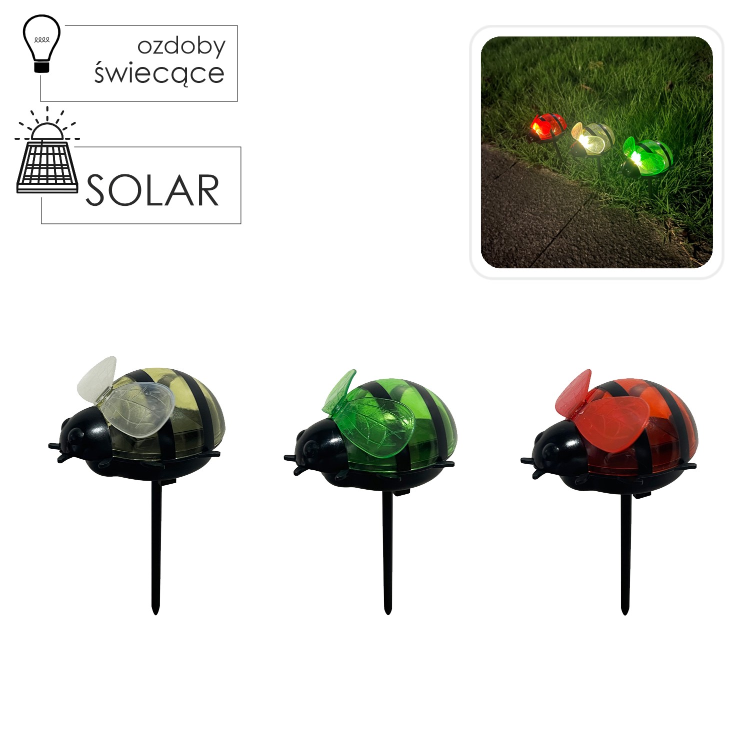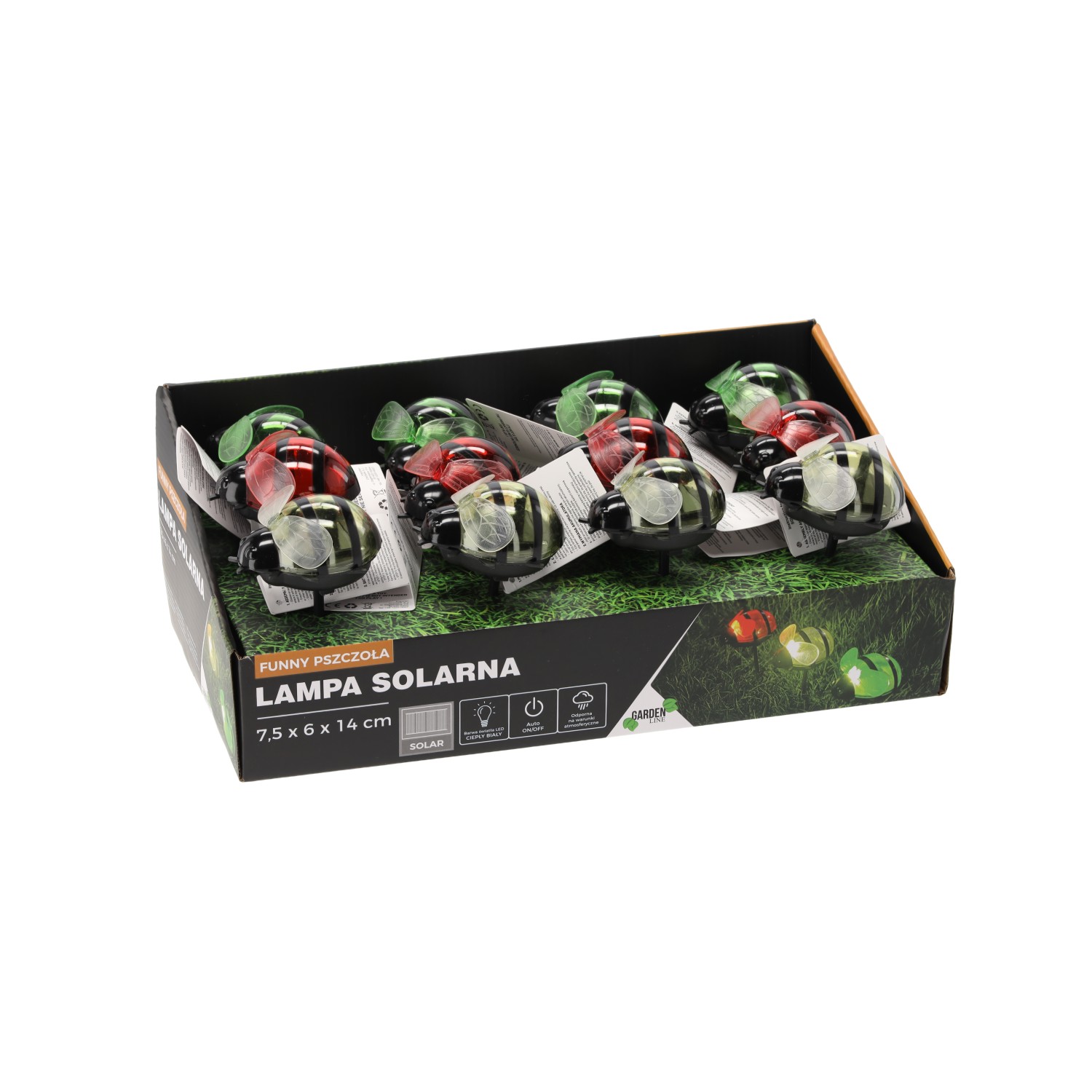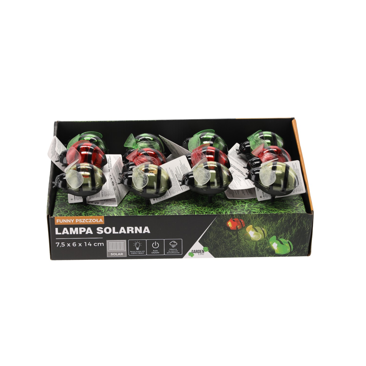 Сонячна лампа LED. Ідеально підходить для саду. Її можна встановити в будь-якому місці, де є відповідне сонячне освітлення. Сонячні лампи найкраще виглядають, встановлені вздовж доріжок, алейок, під'їздів, на терасах або верандах. Вони підкреслюють і доповнюють садову архітектуру, зокрема водоймища або рослинні композиції. Лампи живляться сонячною енергією, тому не вимагають додаткових фінансових витрат.Розміри (мм): довжина: 75, ширина: 60, висота: 140Сонячна панель: 30 x 30 ммЄмність акумулятора: 1 x 1,2 В 40 мАг акумулятор Тип лампочки: 1 x тепла біла LEDМатеріал: пластикПримітки: суміш 3 кольорів - жовтий, зелений, червоний