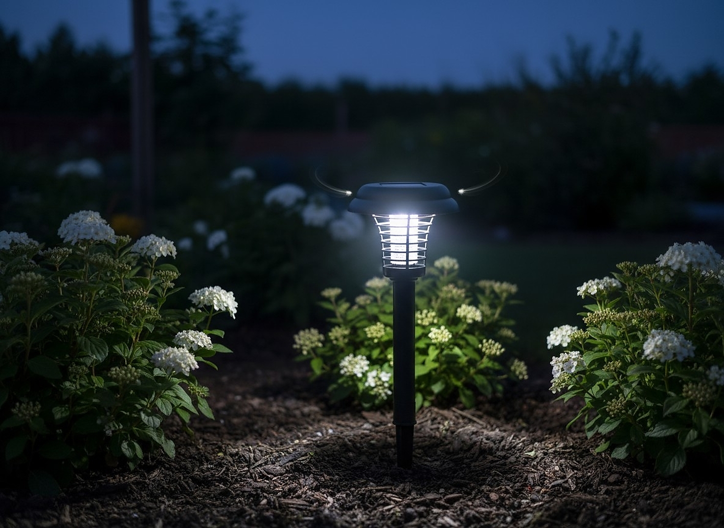 Оснащена білим світлодіодом для освітлення та фіолетовим світлодіодом, що приваблює комах, вона поєднує функцію декоративної лампи з ефективним захистом від комах 🌙