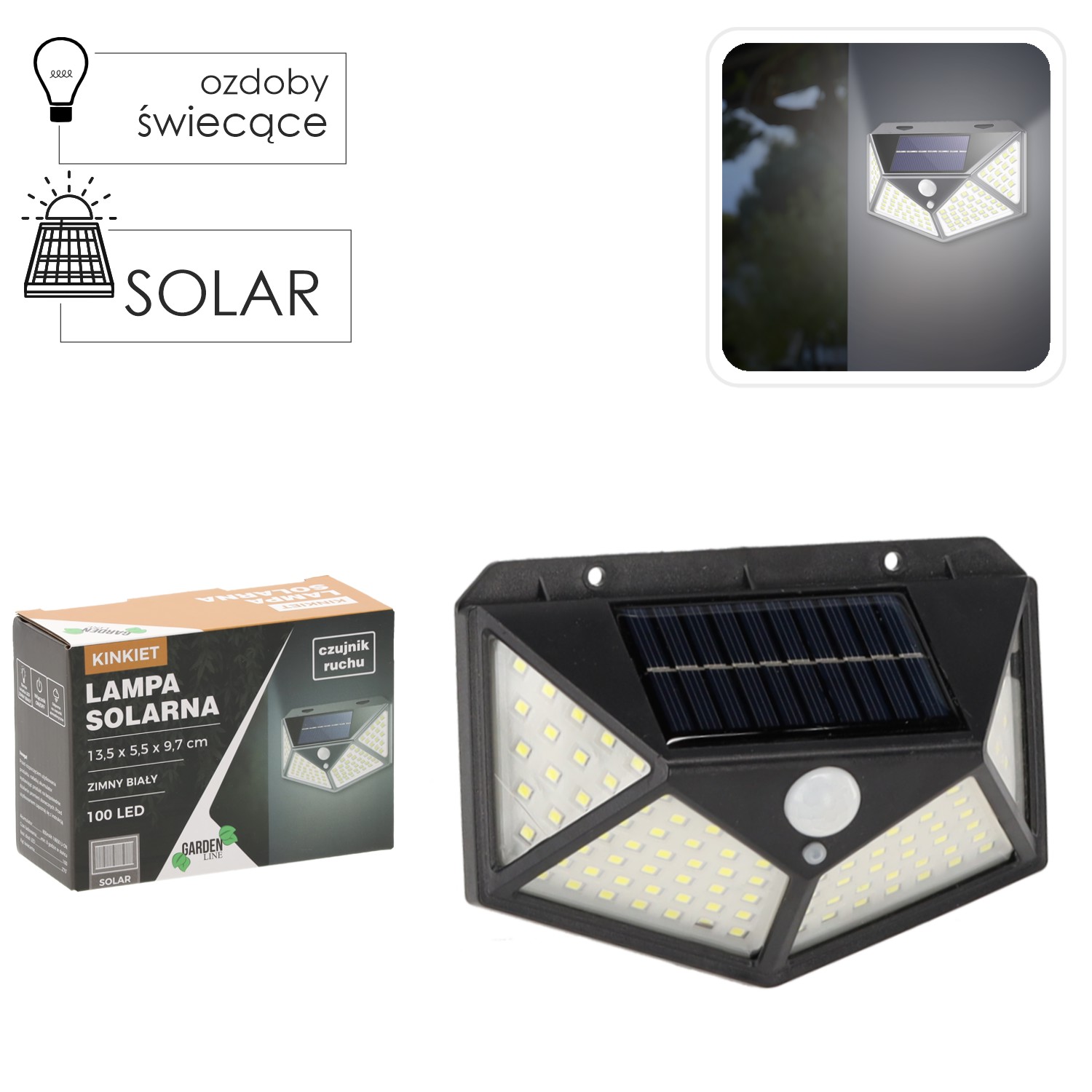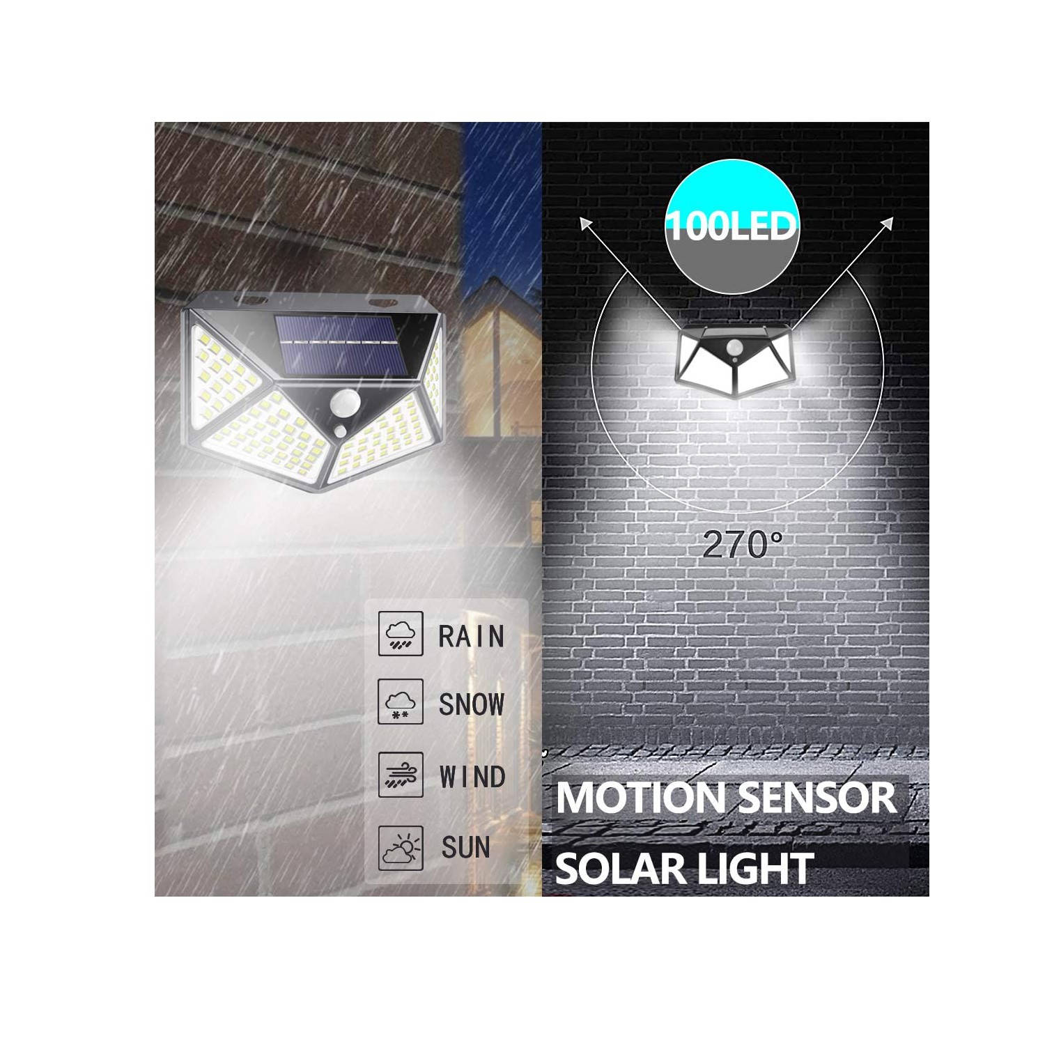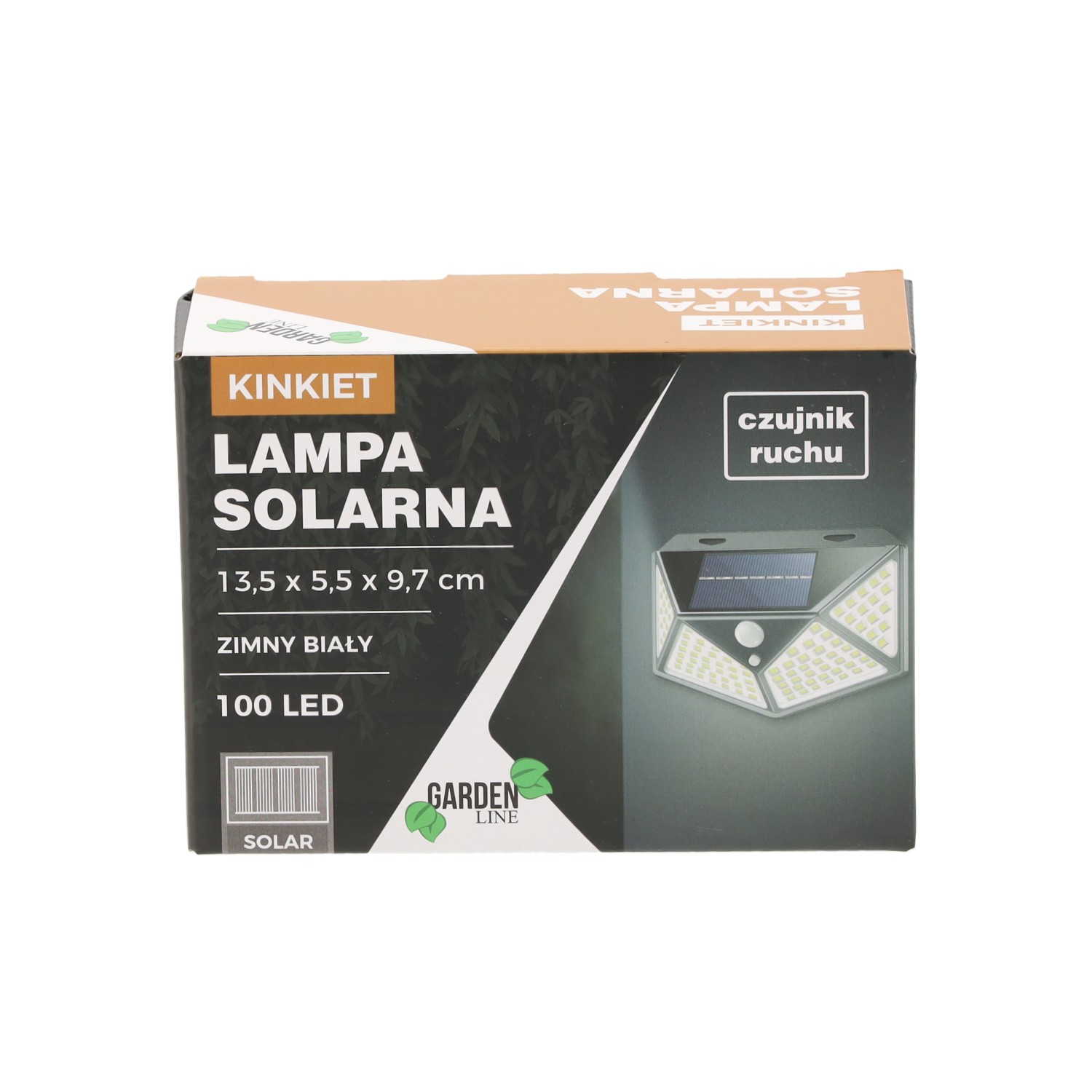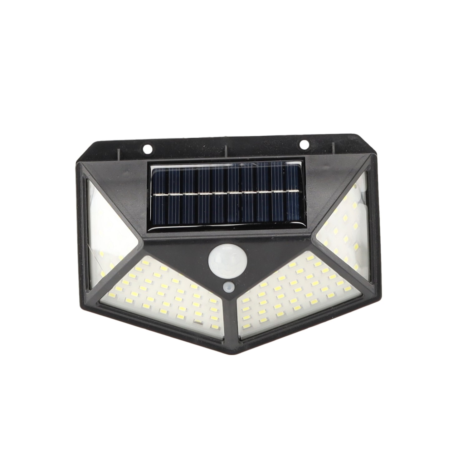 Сонячна лампа з датчиком руху100 світлодіодівРозміри виробу: 13,5 x 5,5 x 9,7 смУ комплекті 1 батарея 18650 LI-ON 800 мАгБілий світлодіодФункції:- «ON» при активації датчика- «OFF» при відсутності активації датчика