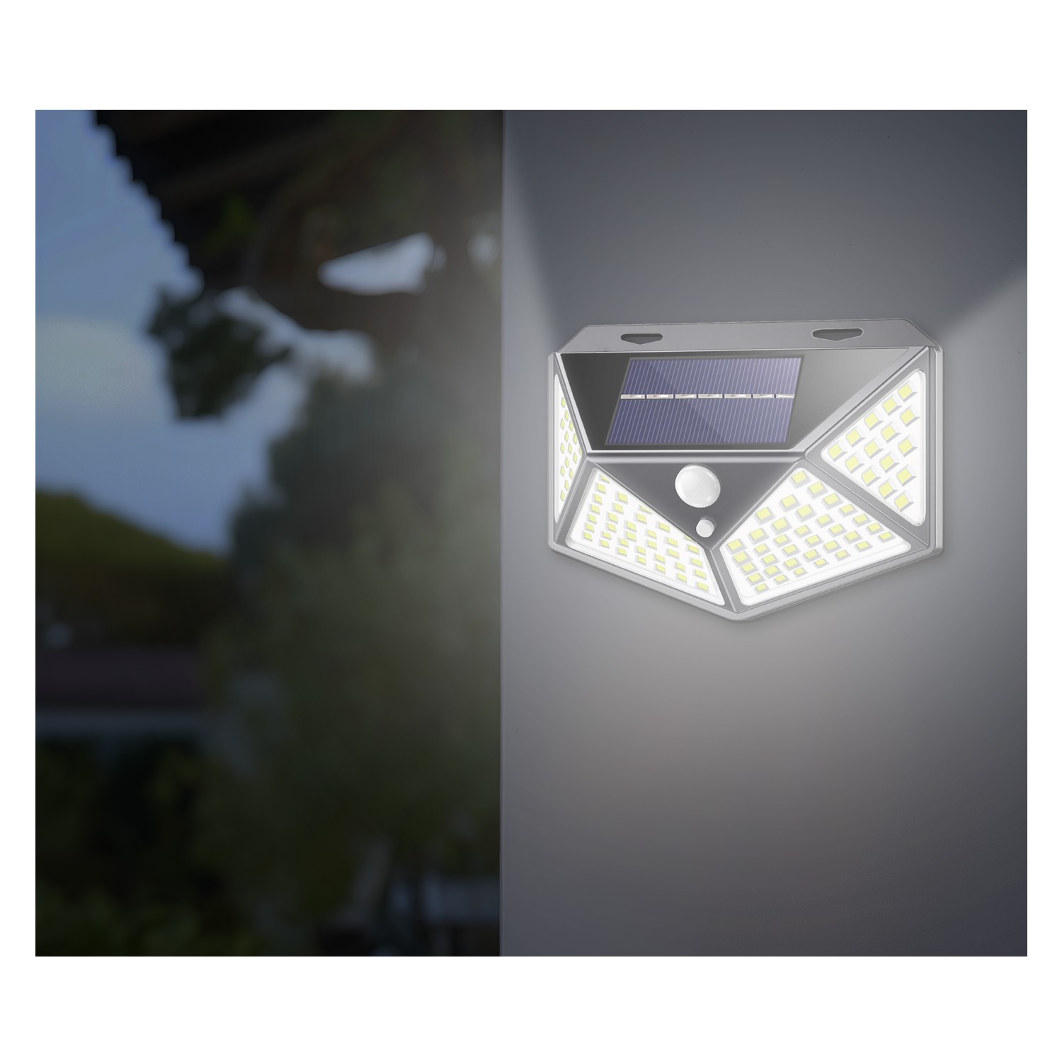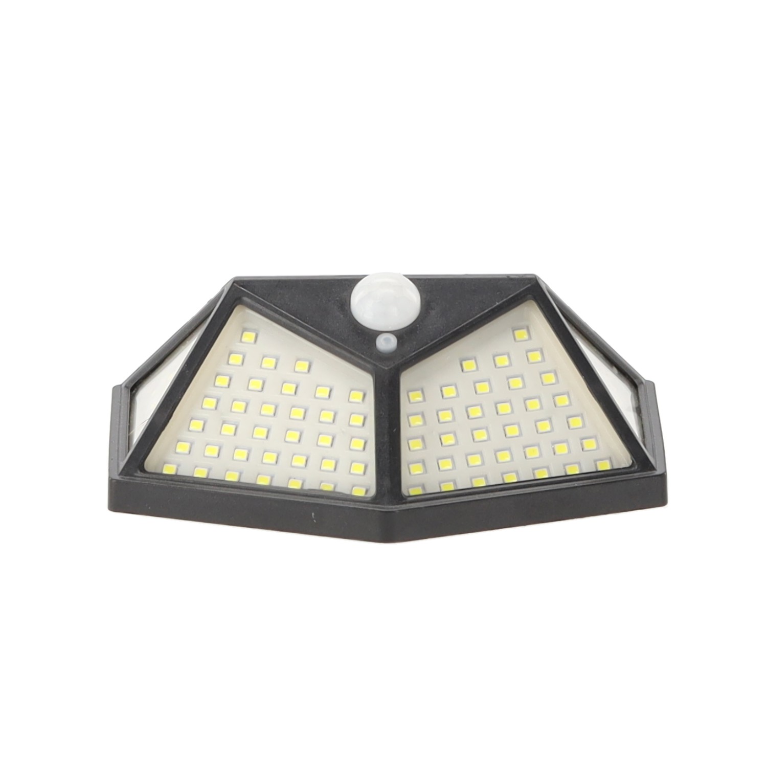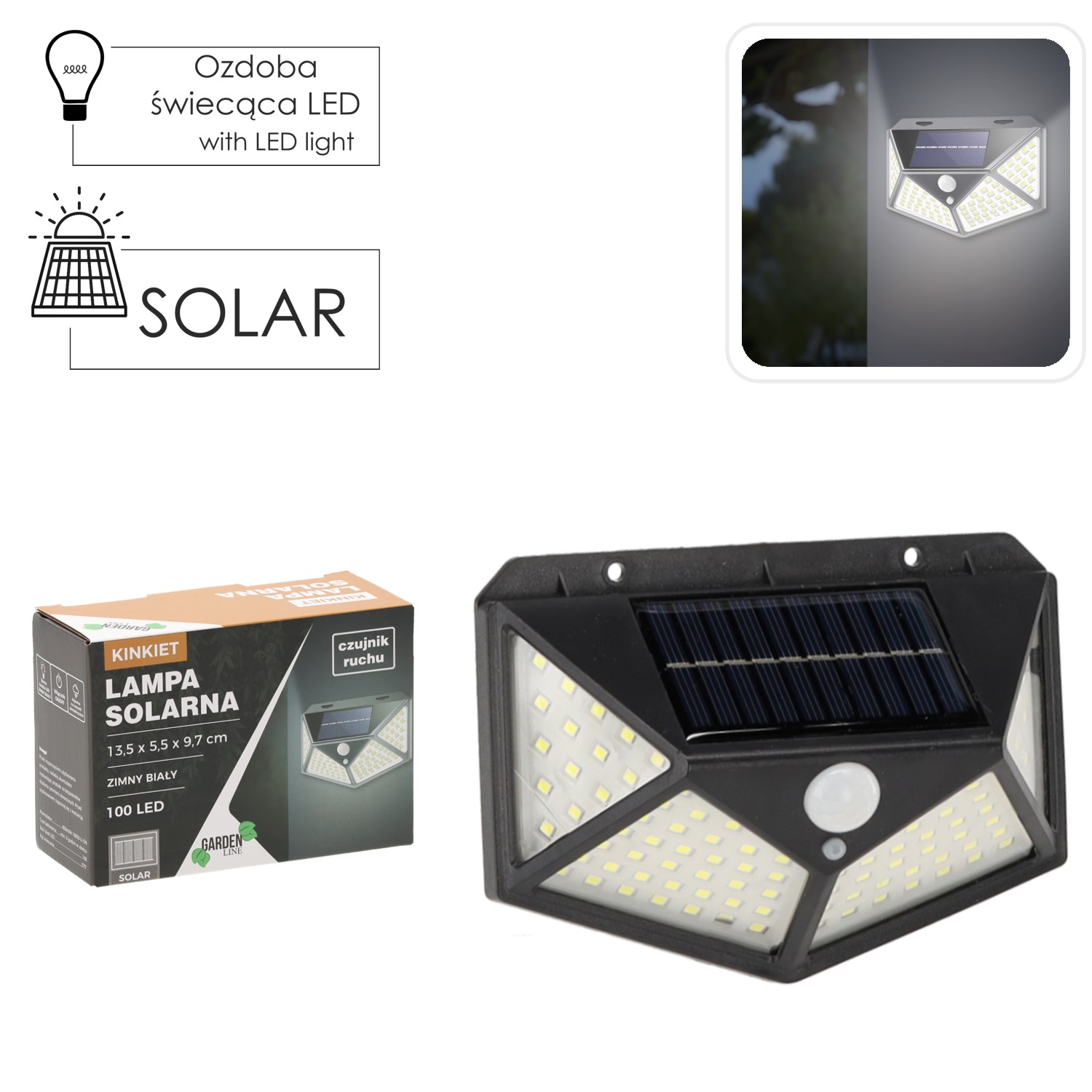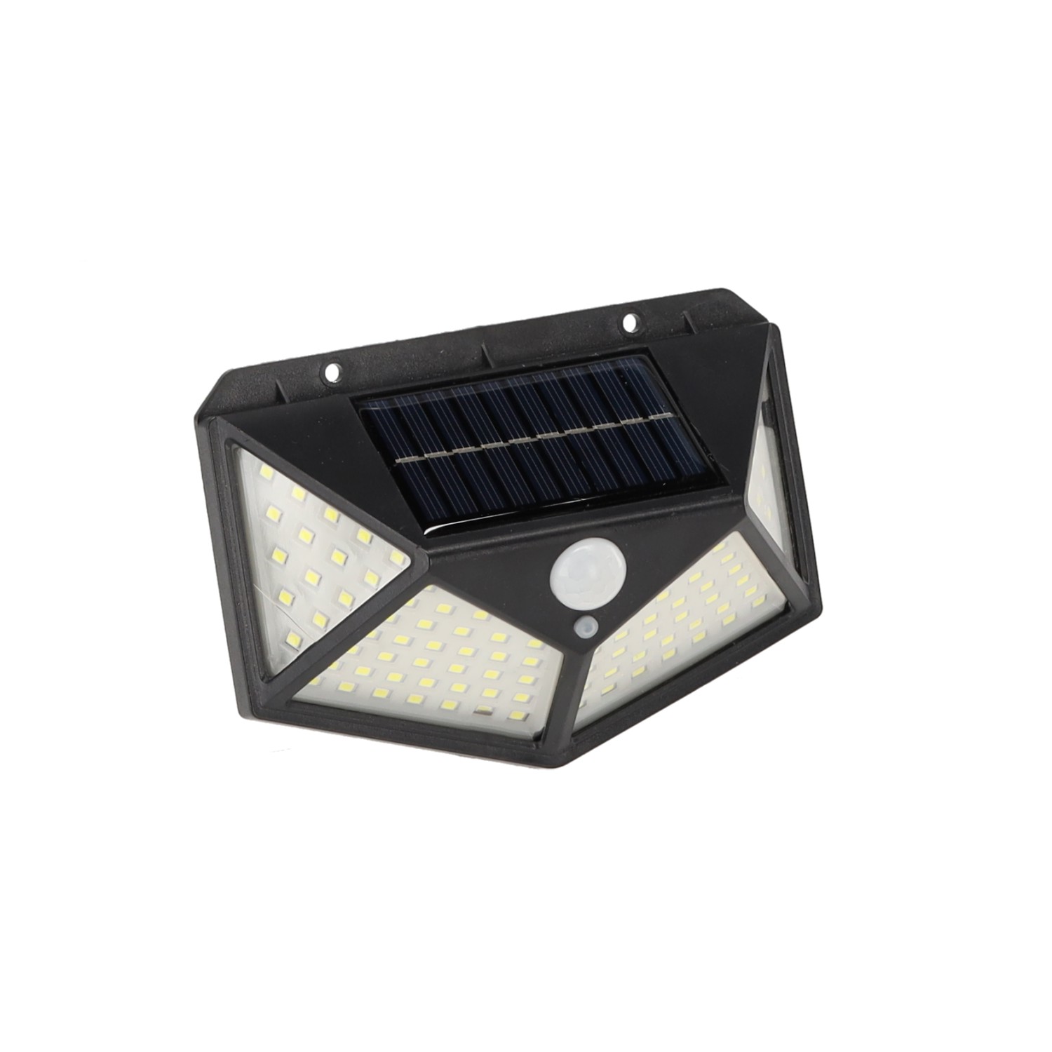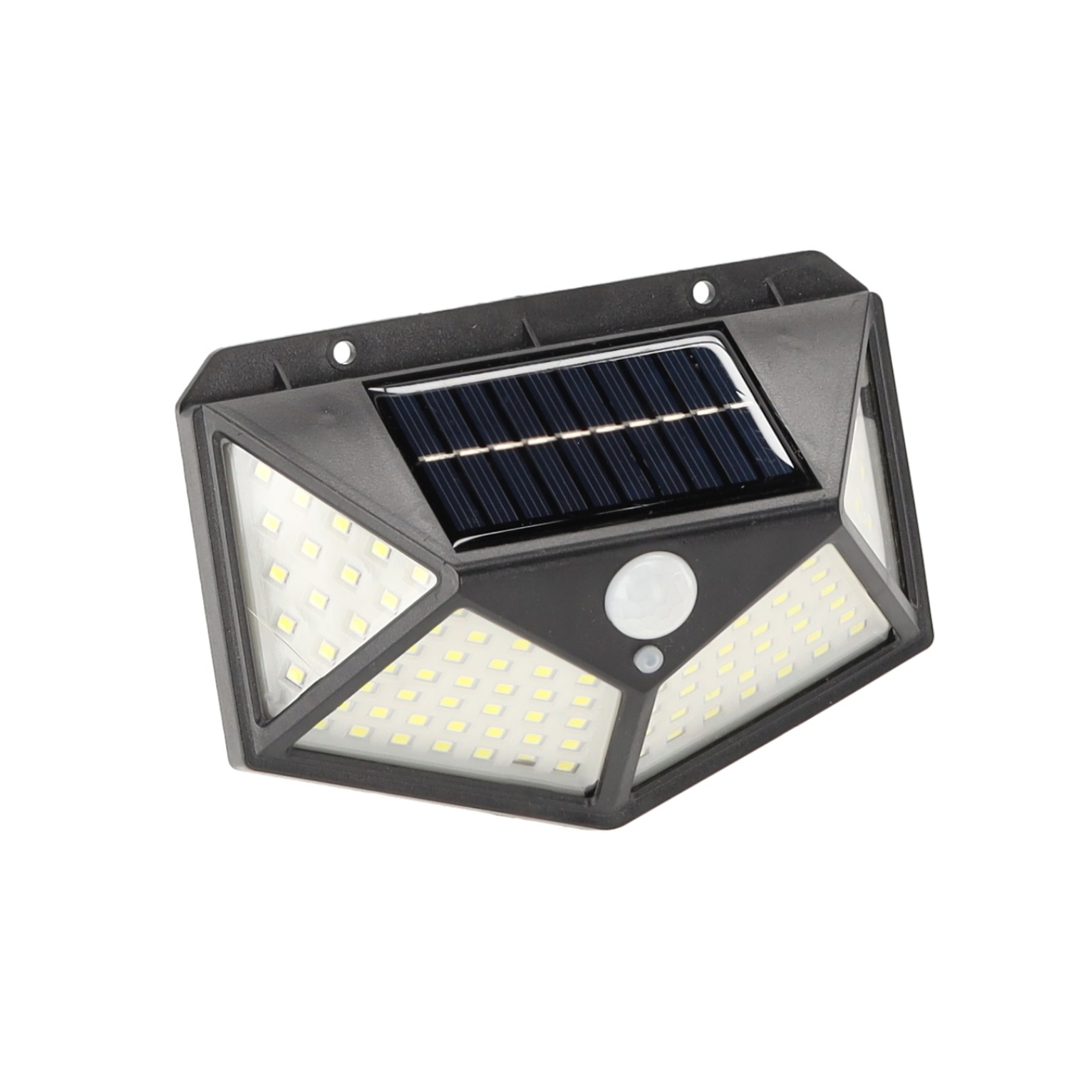Сонячна лампа з датчиком руху100 світлодіодівРозміри виробу: 13,5 x 5,5 x 9,7 смУ комплекті 1 батарея 18650 LI-ON 800 мАгБілий світлодіодФункції:- «ON» при активації датчика- «OFF» при відсутності активації датчика