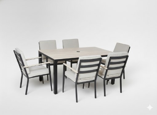 Внесіть у свій сад, на терасу або у зону відпочинку сучасний стиль та комфорт преміум-класу.Цей 7-елементний комплект(стіл + 6 стільців) був розроблений для спільних трапез, сімейних зустрічей та відпочинку на свіжому повітрі ☀️🍽️