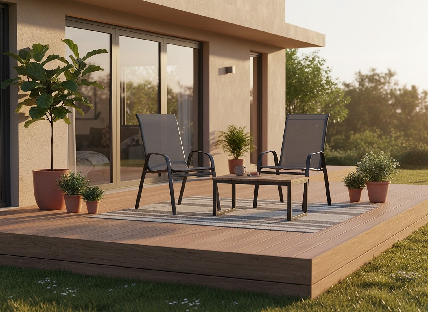 Мінімалістична кольорова гама в відтінках сірого чудово поєднується з будь-яким оформленням зовнішнього простору, створюючи цілісне та елегантне місце для відпочинку ☕🌞
