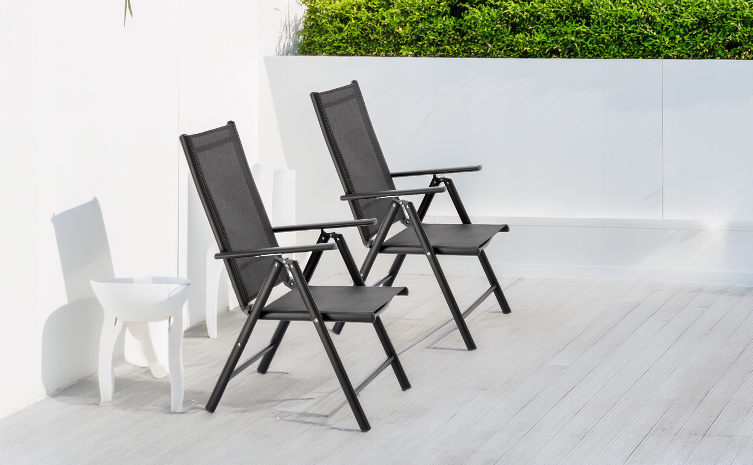 Сучасне та зручне садове крісло - ідеальне рішення для відпочинку на свіжому повітрі. Завдяки можливості регулювання в семи положеннях воно забезпечує максимальний комфорт використання. Міцна конструкція з порошкового алюмінію та міцна тканина роблять крісло стійким до атмосферних умов і ідеально підходять для саду, тераси або балкона.