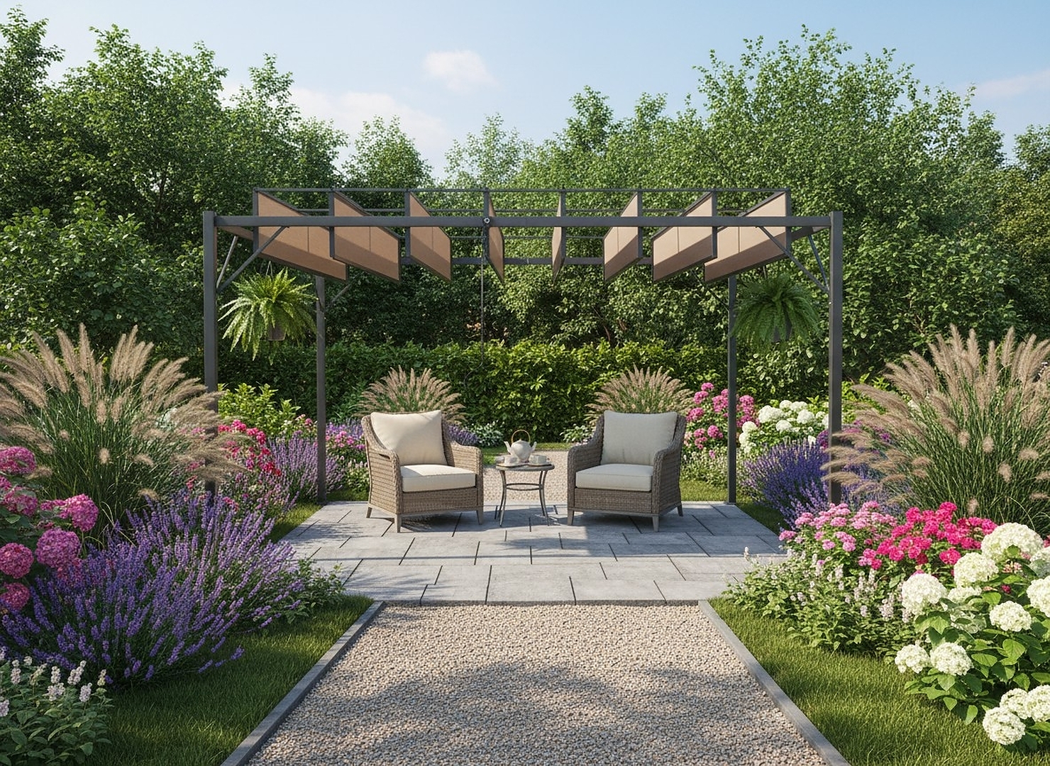 Елегантна та функціональна садова пергола з регульованими ламелями – ідеальне рішення для тих, хто хоче комфортно користуватися терасою або садом незалежно від погоди. Сучасна конструкція поєднує естетику з практичністю – захищає від сонця ☀️, а в разі дощу ефективно прикриває зону відпочинку 🌧️. Це ідеальне місце для релаксу, сімейних зустрічей і літніх вечорів у саду.