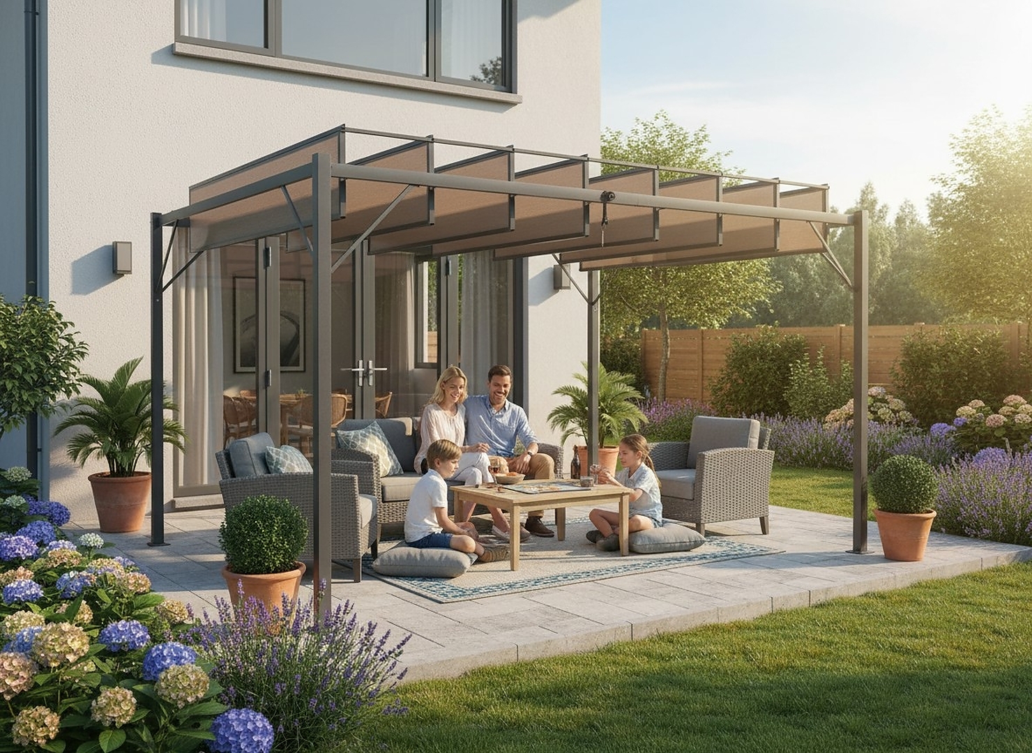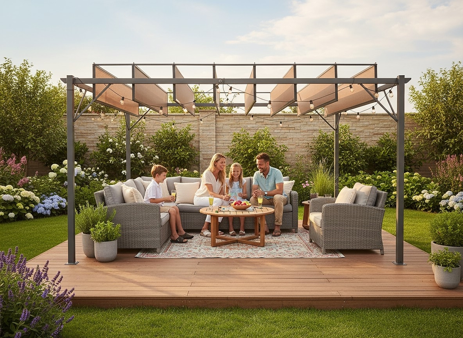 Вибираючи садову перголу 3 × 4 м з рухомими ламелями, ви інвестуєте в функціональність, естетику та зручність. Ви отримуєте стильний захист від сонця та дощу, а також простір, яким будете користуватися протягом усього сезону. Це практичний та елегантний елемент саду, який швидко стане його серцем 🌿✨