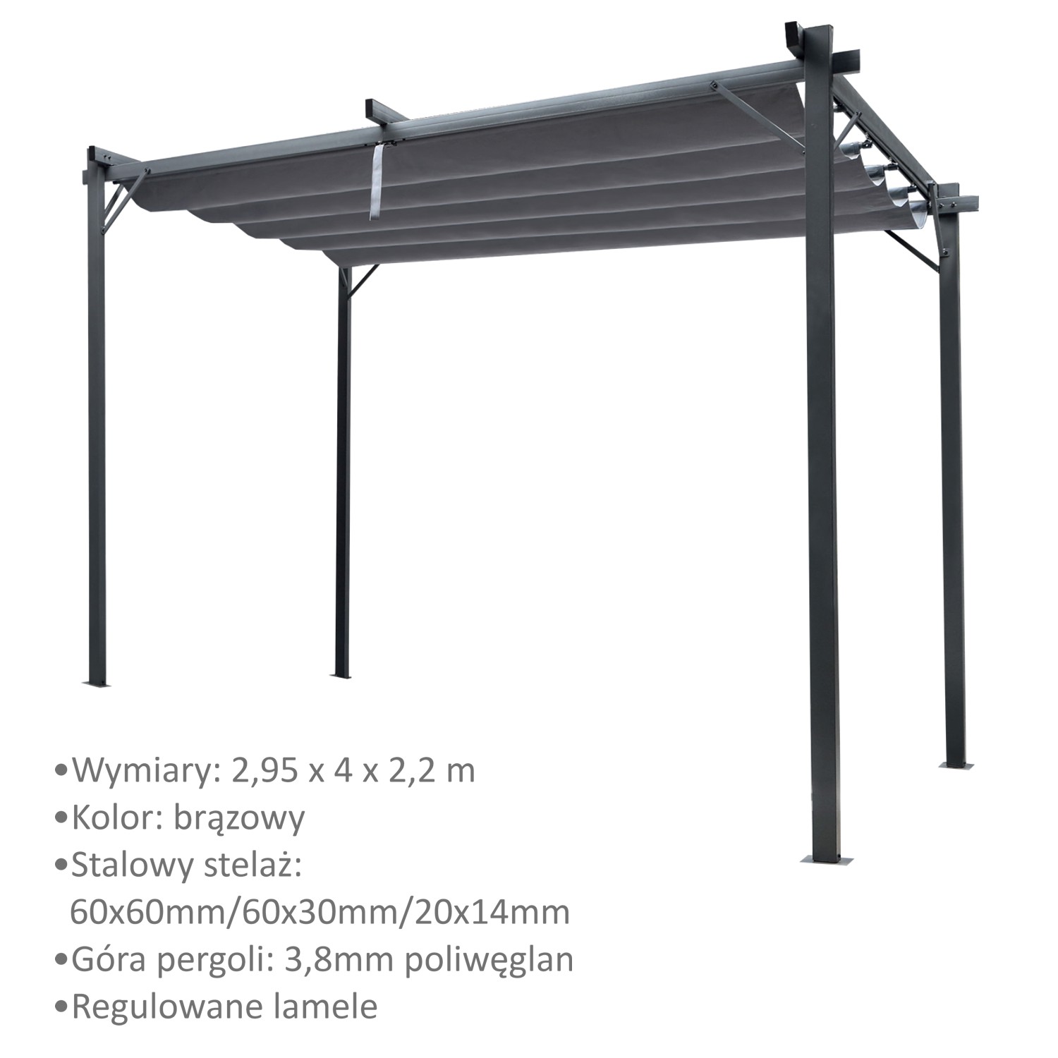 Стабільна пергола - це чудовий продукт для всіх, хто любить проводити час в саду, на терасі. Під час сильного сонячного світла вона захистить вас від сонця, а в разі негоди - від дощу. Складання всієї конструкції займає лише 30 хвилин. Каркас виготовлений з антикорозійних матеріалів, а обшивка - з товстої водонепроникної тканини.