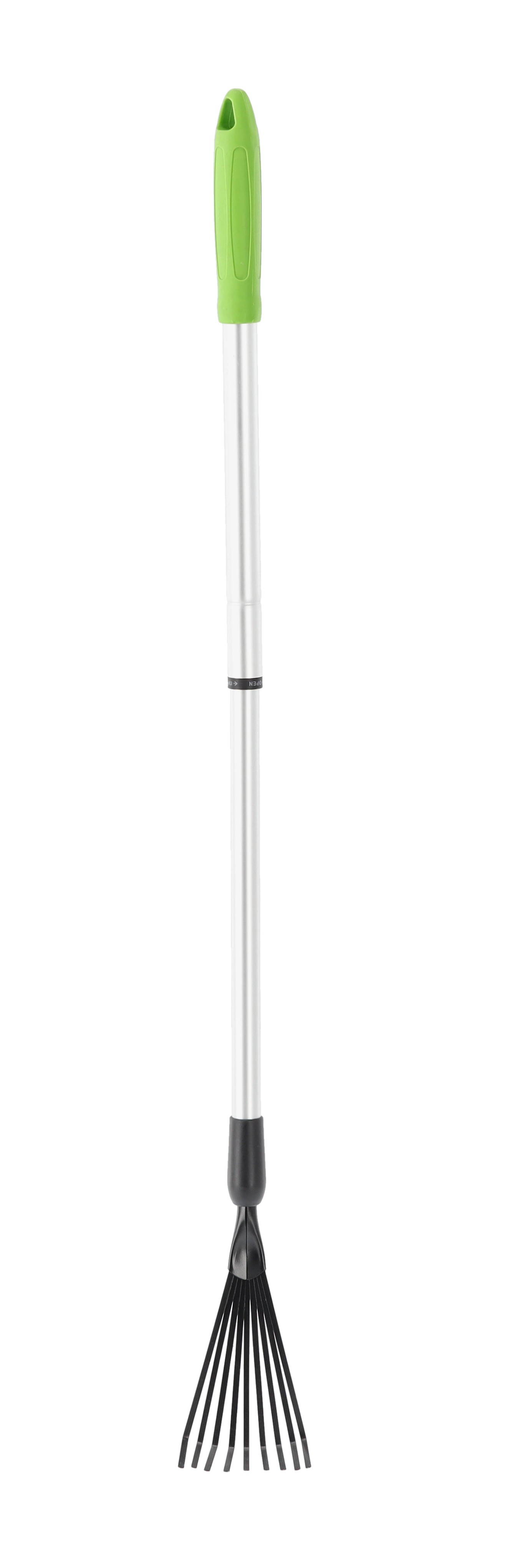 Еластичні зубці з вуглецевої сталі ефективно збирають сміття, не пошкоджуючи газон, а легка алюмінієва ручка гарантує зручність і простоту використання. Це ідеальне рішення для швидкого і точного прибирання в саду! 💪
