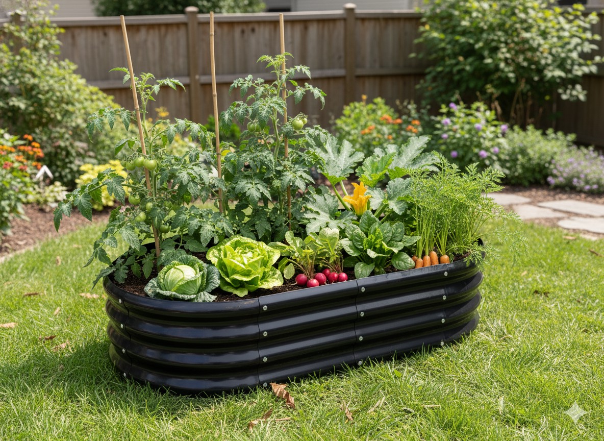 Ця овальна грядка для овочів і квітів поєднує в собі сучасний стиль, довговічність і високу функціональність, яка потрібна кожному садівникові – як початківцю, так і досвідченому 🌿. Завдяки відповідній висоті і міцній конструкції вирощування стає простішим, більш ергономічним і приємнішим.