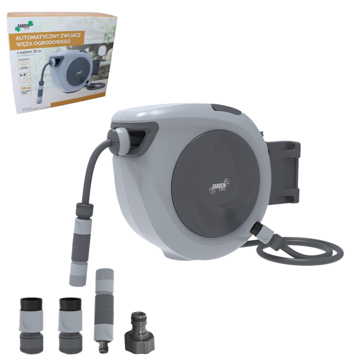Барабан для садового шланга з функцією автоматичного змотування — ідеальне рішення для всіх, хто цінує простоту використання та зручність під час поливу. Завдяки функції автоматичного плавного змотування та розмотування шланга пристрій забезпечує зручність використання, усуваючи проблему заплутування шланга. Система повільного змотування шланга та пружинний привід забезпечують плавну та безпечну роботу пристрою. У комплекті є швидкоз'єднувач, з'єднання для крана та розпилювач, що робить цей продукт універсальним інструментом для саду. Поворотний настінний кронштейн полегшує зберігання барабана, а міцний корпус забезпечує тривале використання.