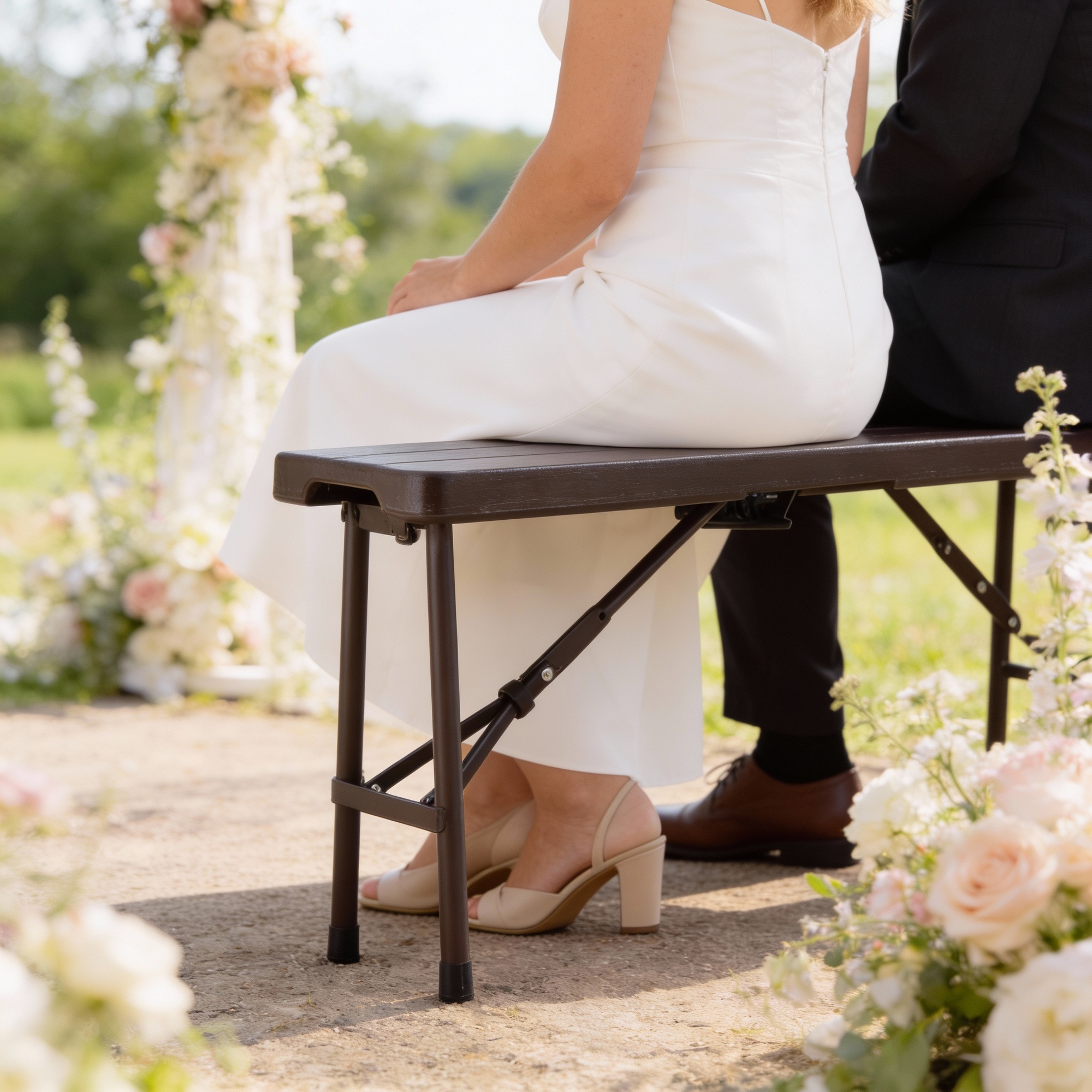 Міцний сталевий каркас у поєднанні з сидінням з HDPE-пластику, що імітує дерево, поєднує в собі довговічність та елегантний вигляд. Стабільна конструкція з опорними ніжками, фіксатором та антиковзними накладками забезпечує безпечне використання на різних поверхнях 🌿🚫